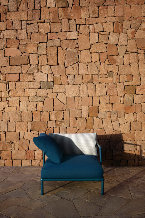 After the great success of Borea, Piero Lissoni and B&B Italia continue to pursue research and sustainability in the outdoor sector, creating Nooch, a modular seating system whose name is inspired by the tropical botanical garden of Nong Nooch in Thailand. The armchait key feature is the tubular structure in recycled aluminium, a light and strong material, completely recyclable. A choice inspired by simplicity, which recalls elementary tubular structures and ennobles them with a design that pays attention to every detail. The intersection of the structural elements represents the iconic feature of this collection, with the particular elbow curve achieved by the way the aluminium bends. A design and engineering detail that combines function and beauty. The paddings are designed with sustainability in mind. They use regenerated materials, which are completely separable, and consist of two layers of polyurethane with different densities and firmness: one layer made of polyurethane recycled from production waste and one made of virgin bio-polyurethane, both wrapped in an outer sheath of recycled PET.