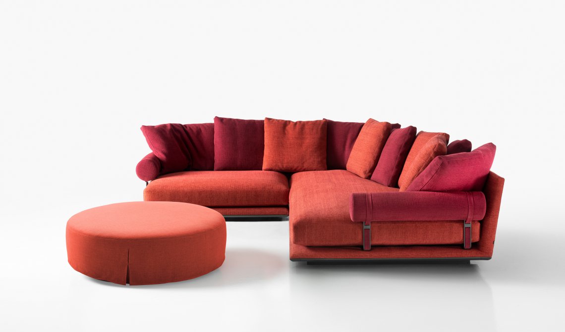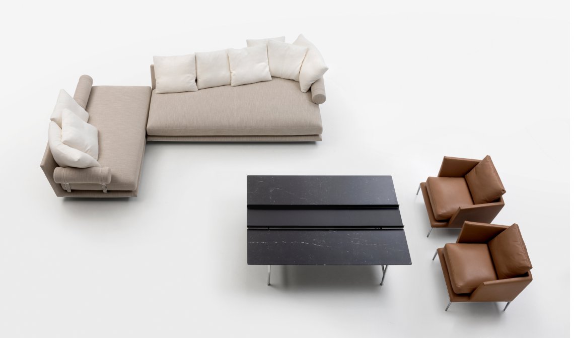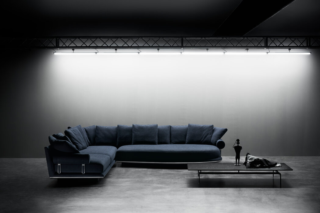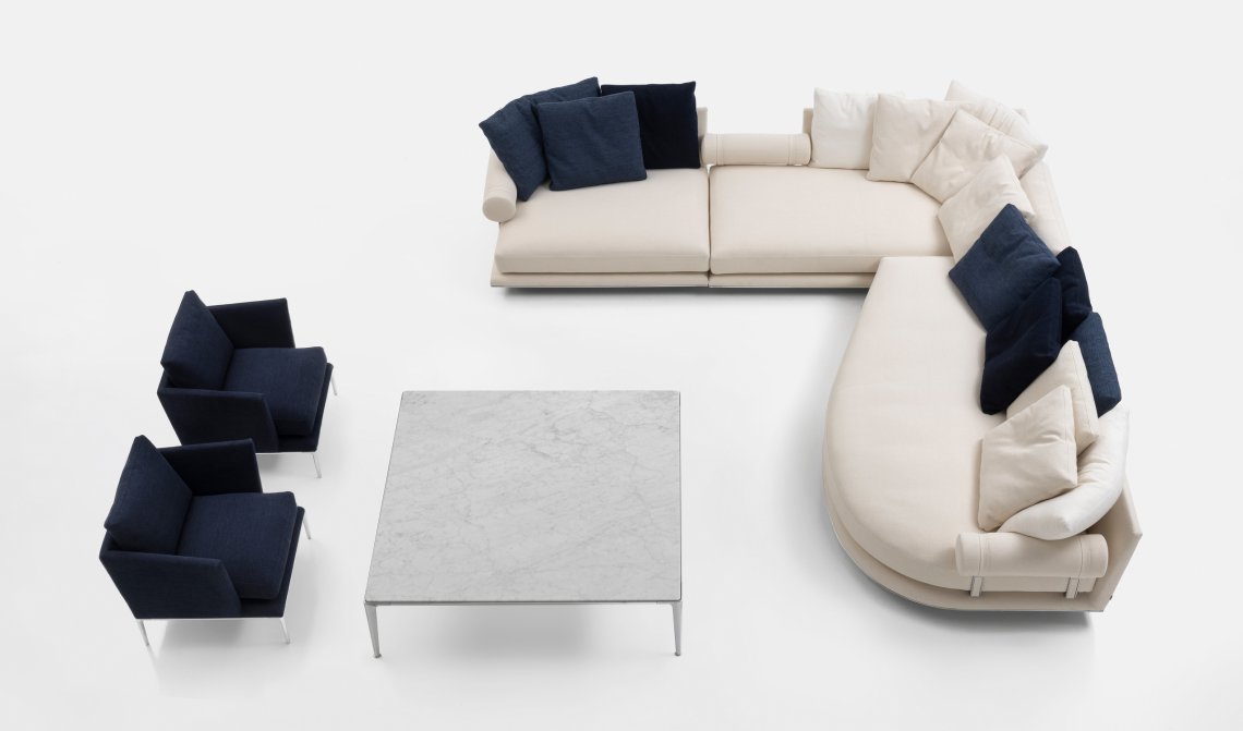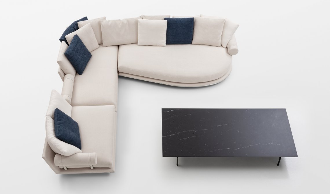 Noonu is an atoll, a corner of pure relaxation amidst the colours of the Maldives. Noonu is also the name of the new sofa system that Antonio Citterio has designed for B&B Italia: a brand-new project created to continue and complete the journey started in 2018 with B&B Atoll. The Noonu collection works in harmony with B&B Italia’s previous collections to form a fully-fledged archipelago of options, where the unique character that distinguishes each individual element does its part in telling a cohesive story. “The theme of islands started back in the mid-‘80s,” says architect Antonio Citterio, “when we invented a selection of new types with the Sity line. We started referring to sofas with ‘peninsulas’ and ‘islands’, but that sort of terminology was, at the time, somewhat unusual. Nowadays, they’re part of our everyday vocabulary”. Today, that pioneering intuition has been transformed into an organic vision in which Noonu is offering itself as a port, a starting point from which to cast off and explore new territory. Noonu is a system of upholstery in which large sizes meet impressive flexibility. The supporting structure disappears from view, creating “islands” which appear to almost float, suspended in mid-air. The seats themselves are deep, with a single, large seat cushion that guarantees extreme comfort, inviting and relaxing whilst also characterising the overall aesthetic. The tilted back is designed to accommodate cushions, which can be distributed however you wish. The design is made even more intriguing by a support element that can be arranged in any manner of positions: a roller cushion bound by sophisticated webbing to a die-cast aluminium frame, which sits beneath the seat cushion. This allows you to use it freely as a terminal armrest element or as a headrest, to read or to work, placed between the seats or removed entirely, depending on how the sofa is being used. As Antonio Citterio tells us, the story of Noonu is rooted in a journey that started a few years ago: “Atoll and Noonu stemmed from a single idea, namely a cylinder that could be used as an armrest and cushions distributed freely over the sofa. What’s new in Noonu is the apparently suspended seating, which extends all the way to the floor, and the new types of elements that we have defined as “piano” and “sail” elements, lending a certain identity and richness to the design”. Noonu is comprised of four basic elements, namely a square and a rectangle, in addition to the brand-new “piano” and “sail” elements. The piano-shaped base creates a welcoming curve in the backrest, whilst the sail provides a generous, rounded volume at the front. Antonio Citterio has designed them to be “natural chaises longues”, bold evolutions of the peninsula module, new organic forms conceived with total relaxation in mind, just like the special pockets of nature that Noonu is named after. Each component in the Noonu collection has, at its base, a metal profile made from curved, pre-shaped aluminium, a strip that runs along the entire perimeter of the frame, defining it, which comes in a selection of different finishes. The same finishes are also available for the supports for the roller elements. Noonu is set to be introduced in a new fabric with 12 colour variants: solid colours and mélanges of neutral hues, but also sophisticated shades of blue, green, red and orange. These are bold yet extremely homely tones, designed especially to suit combinations between the various elements of each individual composition (frame, cushions, rollers), thus allowing for a custom solution of an unrivalled elegance. In addition to this fabric, Noonu will also be available in leather. According to Antonio Citterio, “Noonu is a fully-fledged domestic island”. And this island will draw on the straight and curved lines of its four basic components to establish a dialogue with the walls, but also to take centre stage in the room and create spectacular and dynamic islands. The elements of Noonu can also stand on their own as individual objects, be combined to create personalised compositions, or be selected to form a dialectical relationship with other elements from B&B Italia’s collections, such as B&B Atoll seats and ottomans, Mirto accessories, and Diesis and Pianura tables. “From Atoll to Noonu,” concludes Antonio Citterio, “what we have is a path that has developed over several years and that now, finally, we can present as a single project, a fully-fledged archipelago”.