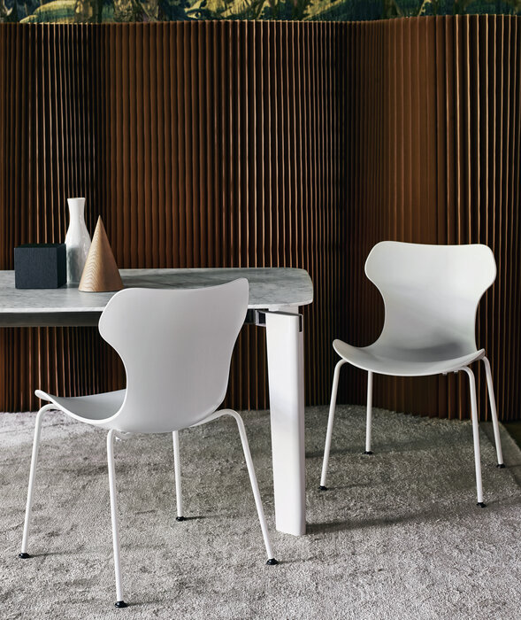 Forming part of the iconic seating collection of the same name, the Papilio Shell chair comes either with a shell entirely in polypropylene or with a shell padded and covered in fabric. The base comes in two versions: with four steel or wooden legs. The shape of the back of Papilio Shell calls to mind the multicoloured wings of a butterfly ready to take flight. It is this detail that inspired the name, “papilio” being the Latin term for butterfly.
