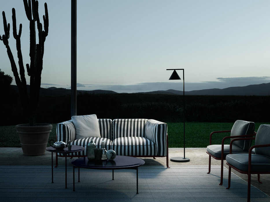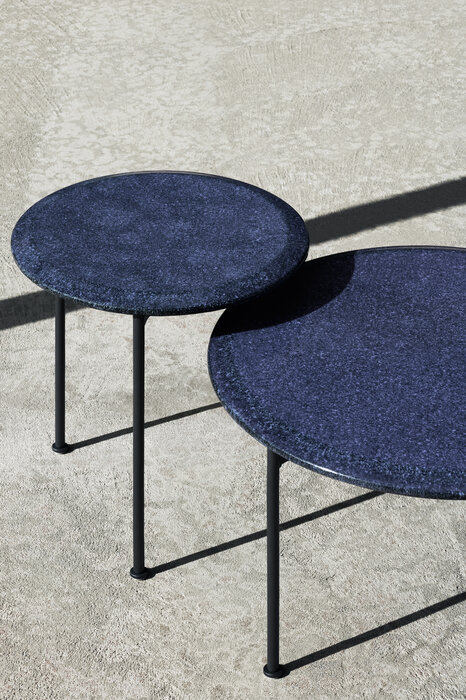 The Borea small tables for outdoor use offer refined support solutions that play with shapes, sizes and materials. They stand out for their thin frame in painted steel rod and tops in enamelled lava stone, both available in different colours.