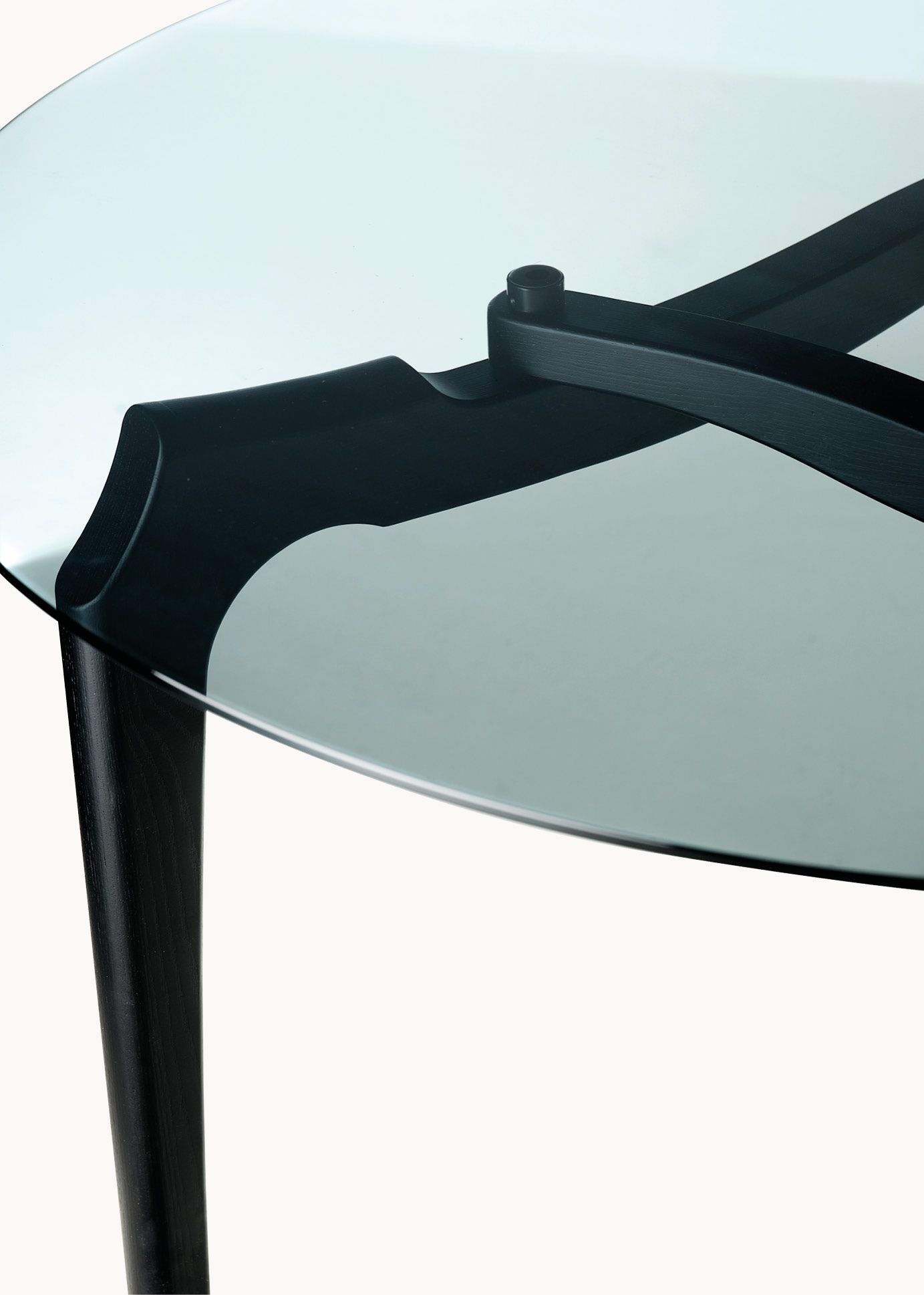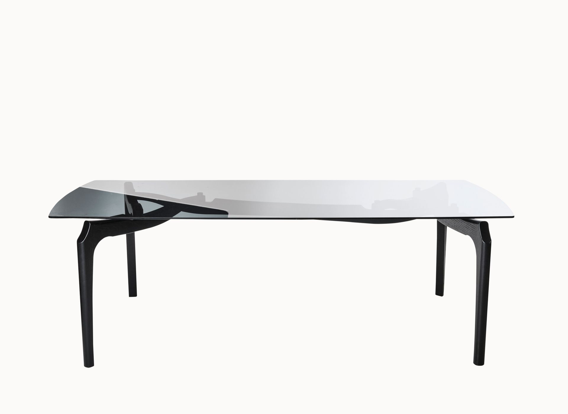 Cheekily calling to Carlo Mollino’s greater influence on Oscar Tusquets, these tables were named Carlinas. Their clear surface exposes the now-visual supporting structures. Like Mollino’s nature-informed pieces, the Carlinas boast punctuating twisting stretchers that hold the smoked glass tabletop.