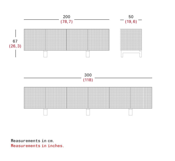 尺寸:200 x 51 x h.67 cm 300 x 51 x h.67 cm