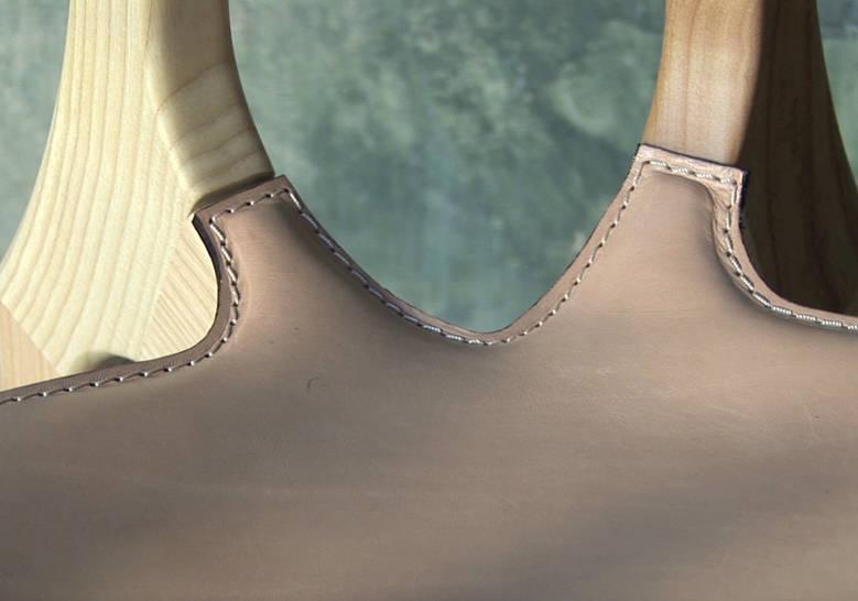 Estructura y respaldo en fresno macizo barnizado natural o te?ido (roble o negro). Asiento tapizado en cuero.