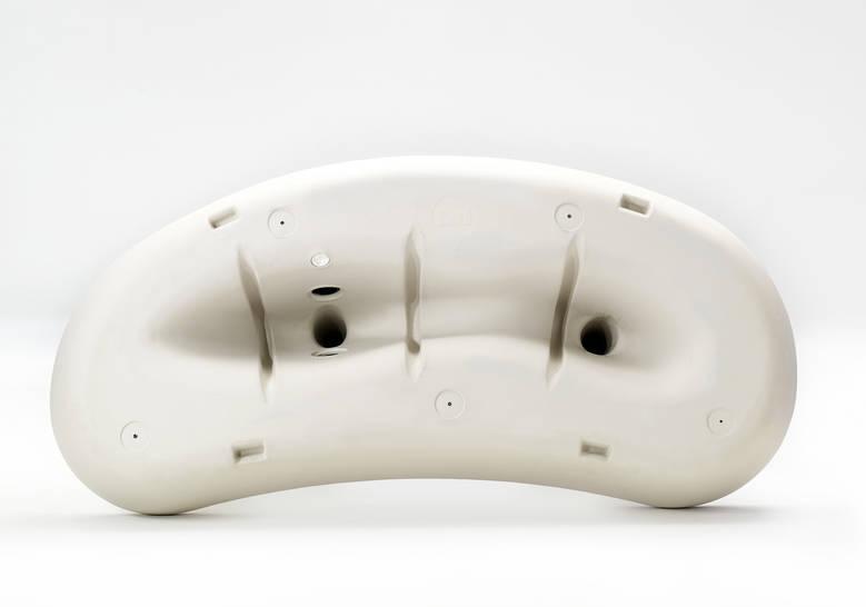 La pieza está fabricada con polietileno rotomoldeado, un material impermeable que se pigmenta en