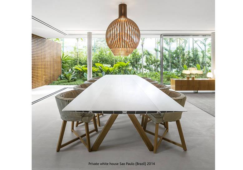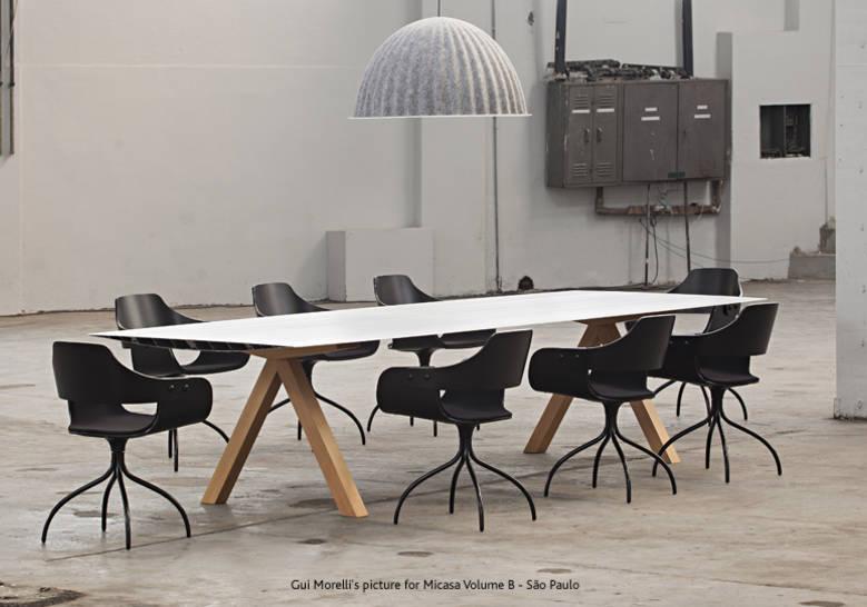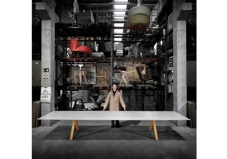 La Table B, que inauguró la colección Extrusions en 2009, puede alcanzar una longitud de hasta 5 metros con un perfil mínimo de aluminio extrusionado. Su aparente simplicidad esconde un complejo desarrollo técnico en el que han participado importantes ingenieros. El resultado es una pieza de high artesanado con todo el carácter del dise?ador alemán.