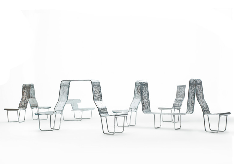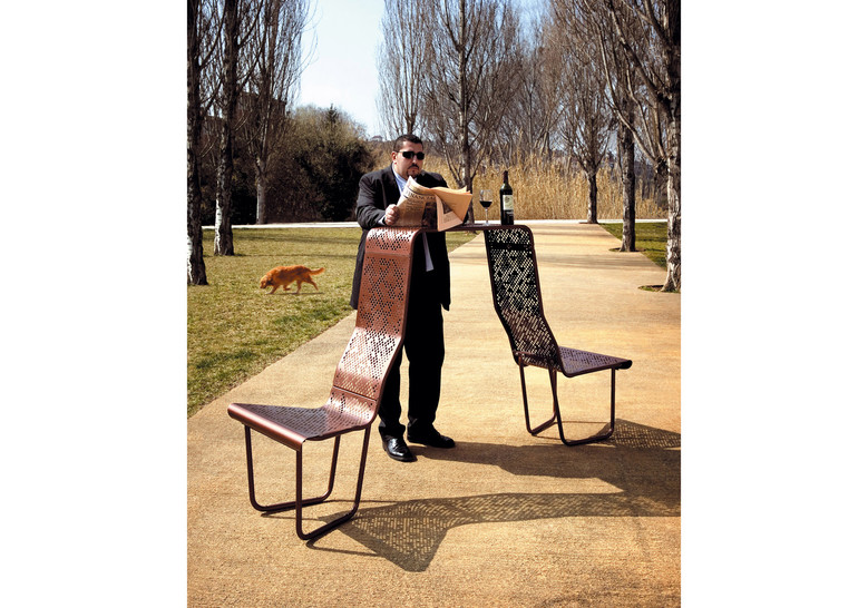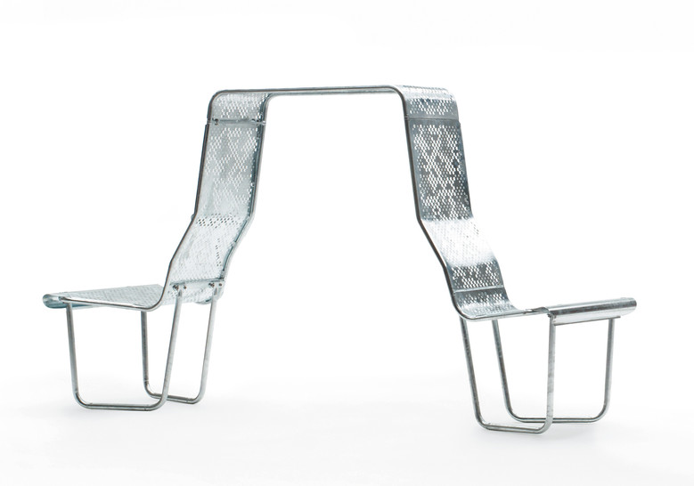 Patas en tubo de acero y asientos compuestos por un chasis en tubo de acero recubierto con chapas