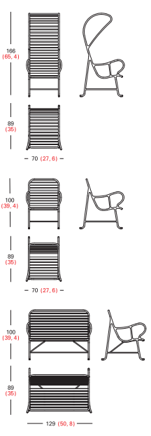 Estructura fabricada en fundición y extrusión de aluminio. Pintadas en blanco (RAL 9001), verde (RAL 6021) o gris (RAL 7015) con pinturas Alesta de Axalta.