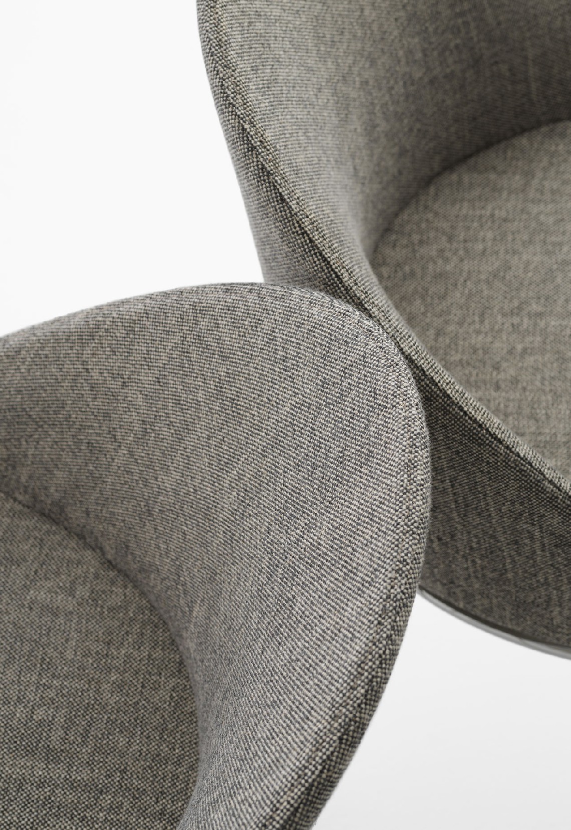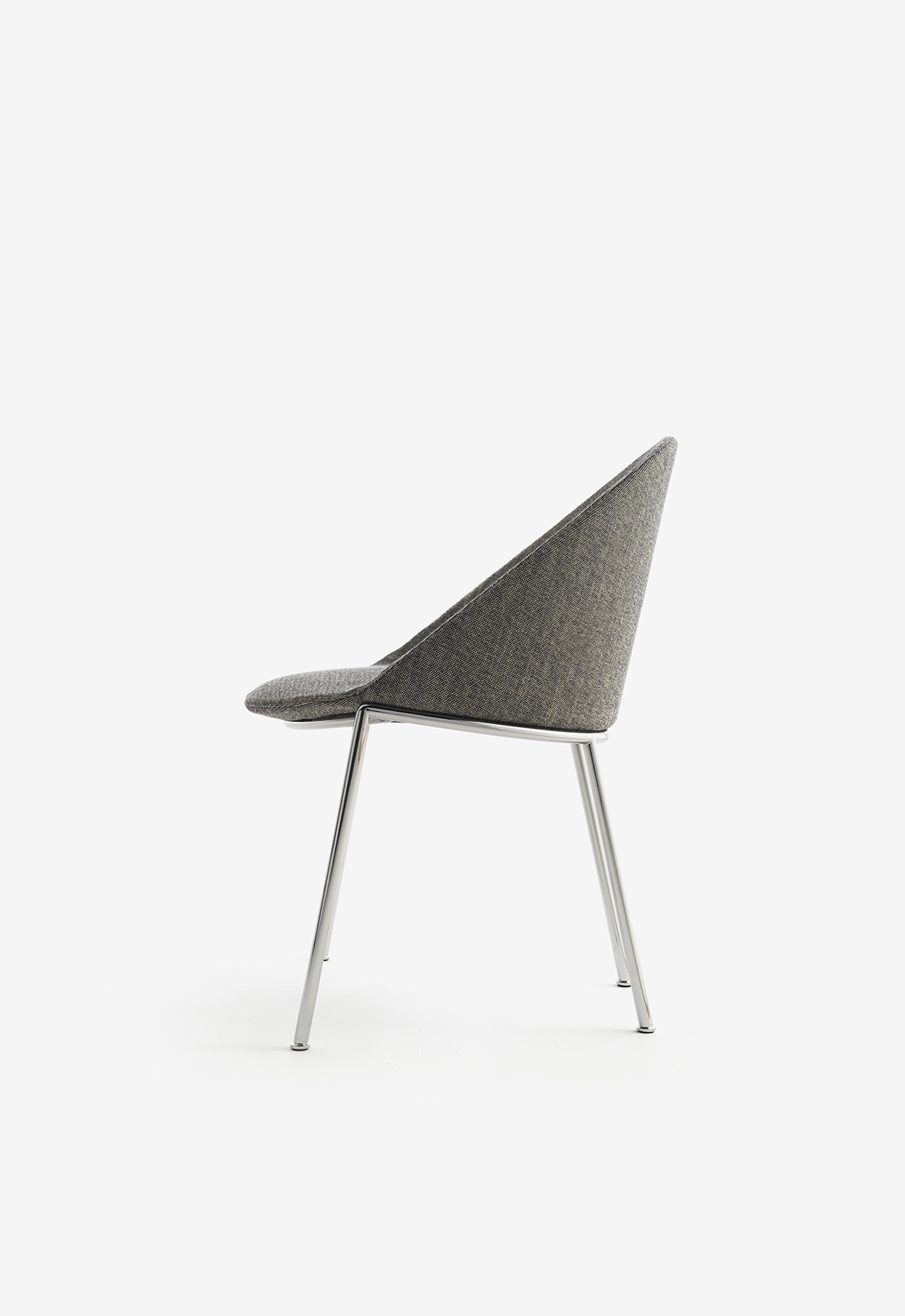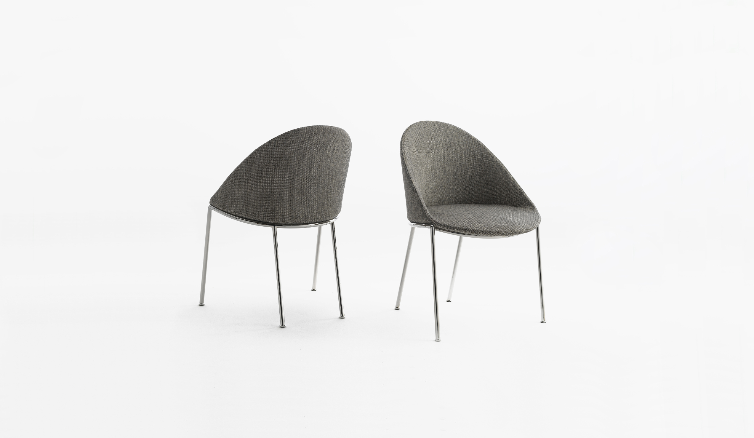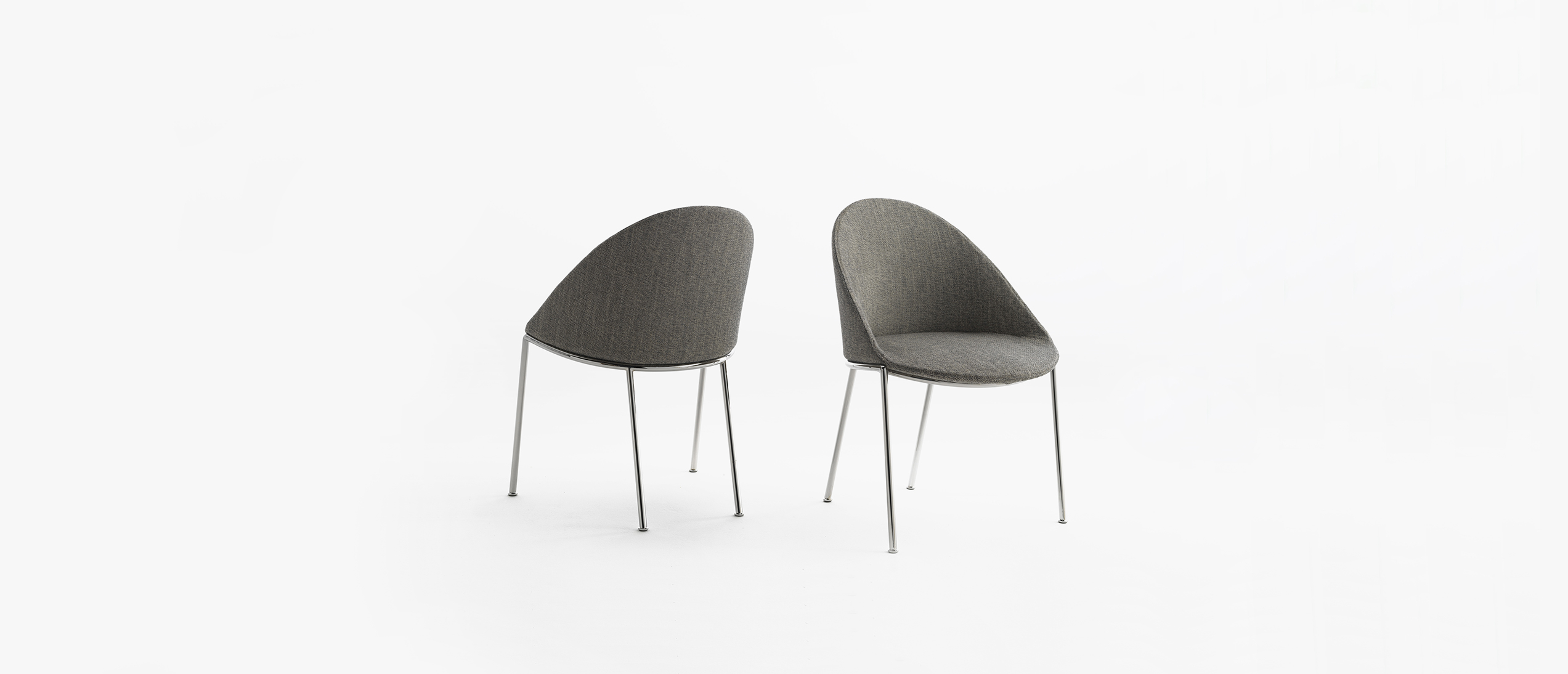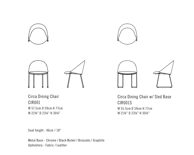Simple curves compose the backrest perimeter and waterfall front edge of the Circa dining chair. Finely crafted upholstery augments the graceful form with a tailored appearance.