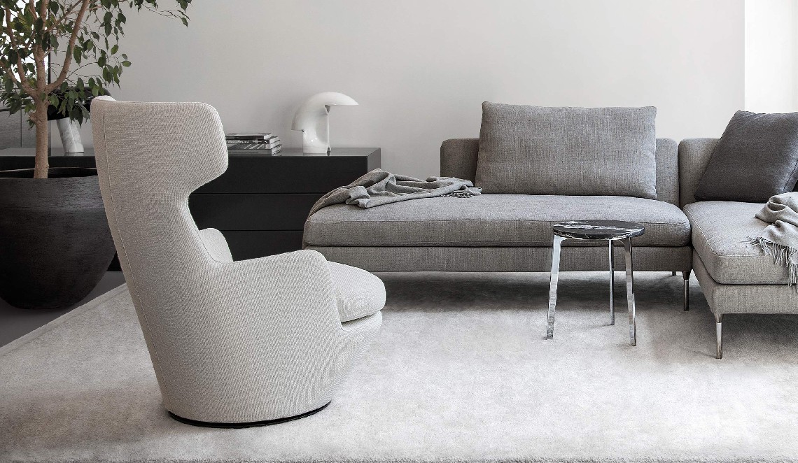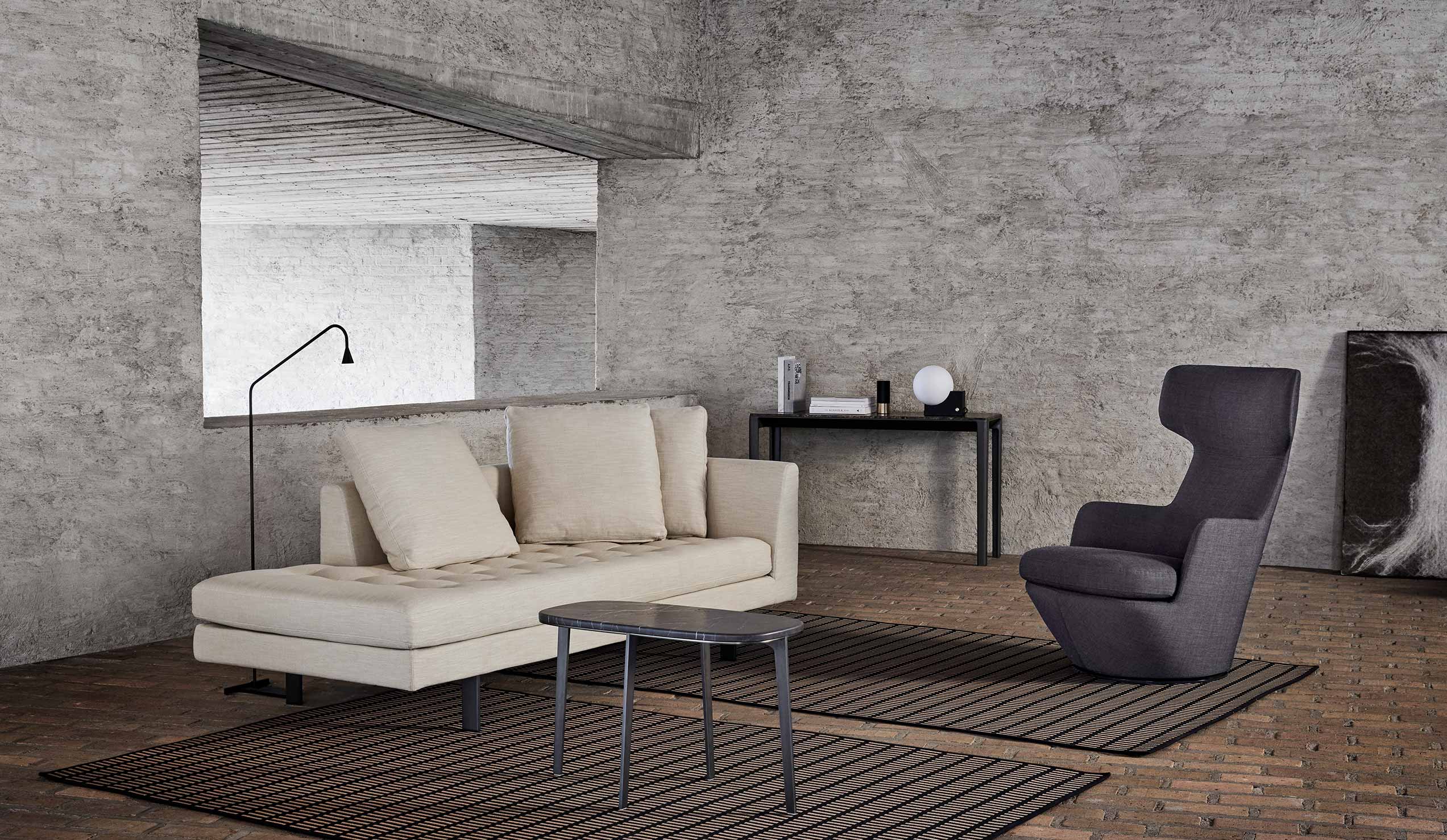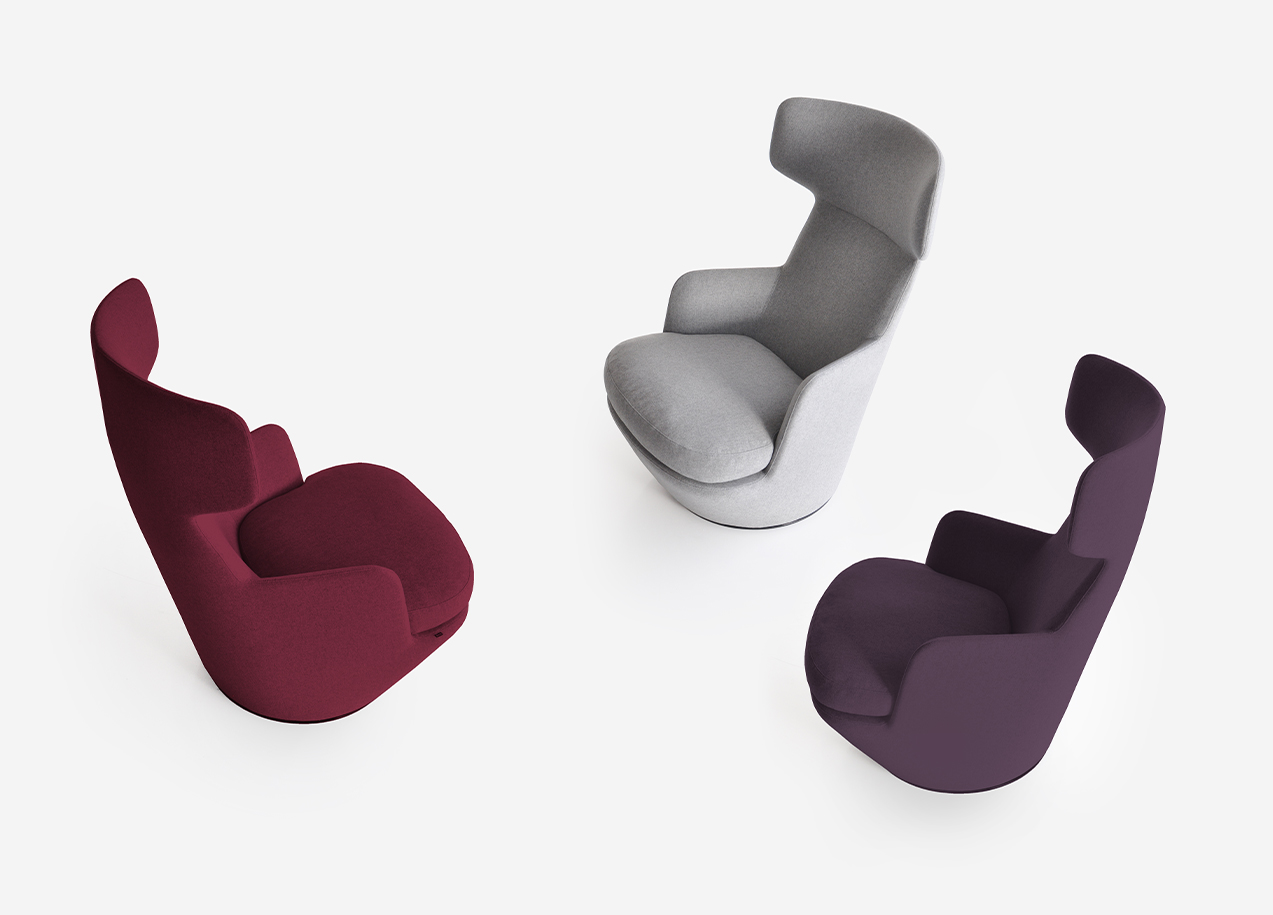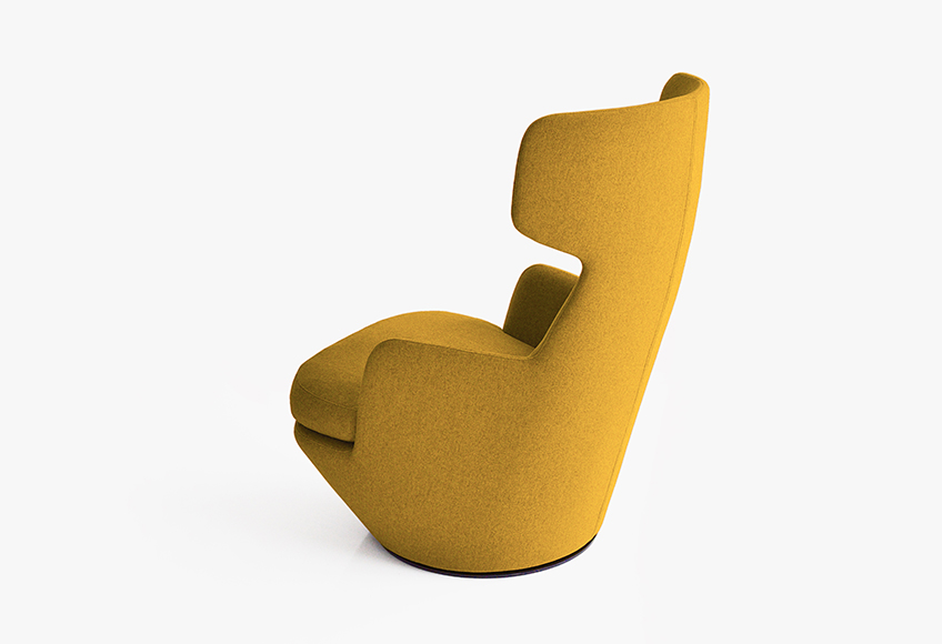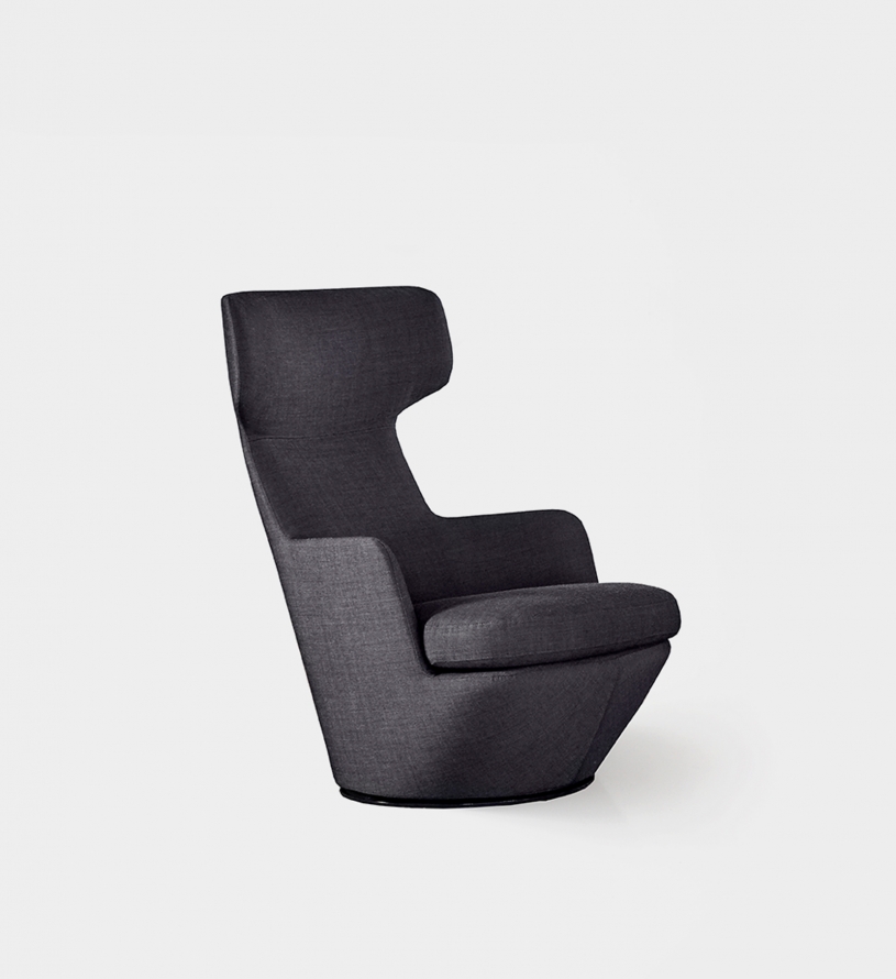 A contemporary wingback chair that swivels. The My Turn is a commanding chair with a surprisingly small footprint.