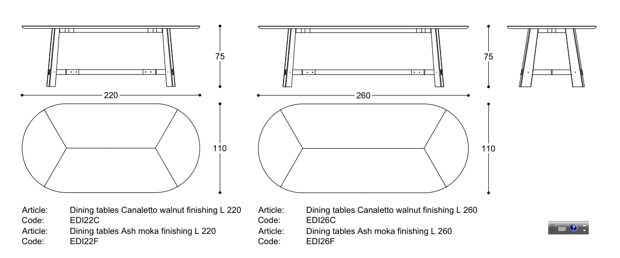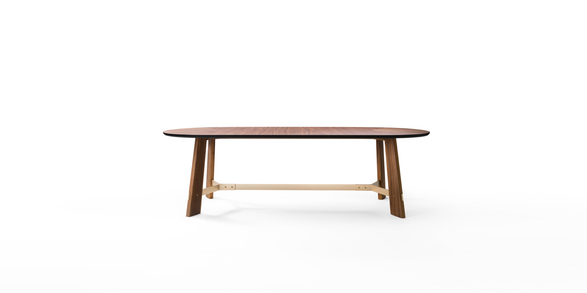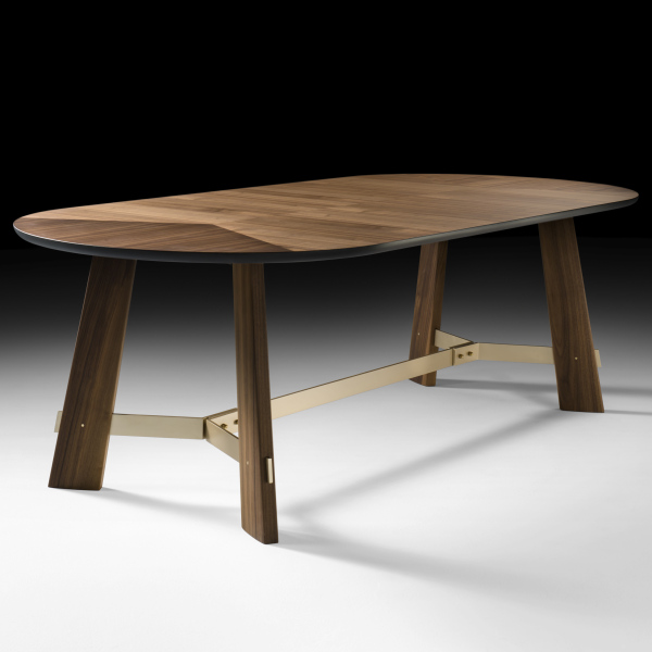 Dining table with supporting structure in Canaletto walnut or Ash moka solid wood, top in MDF with Canaletto