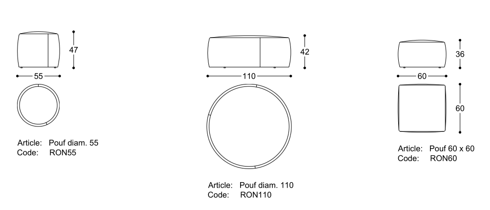 Pouf con struttura in multistrato di pioppo.Imbottitura in poliuretano espanso a quote differenziate ad alta densità