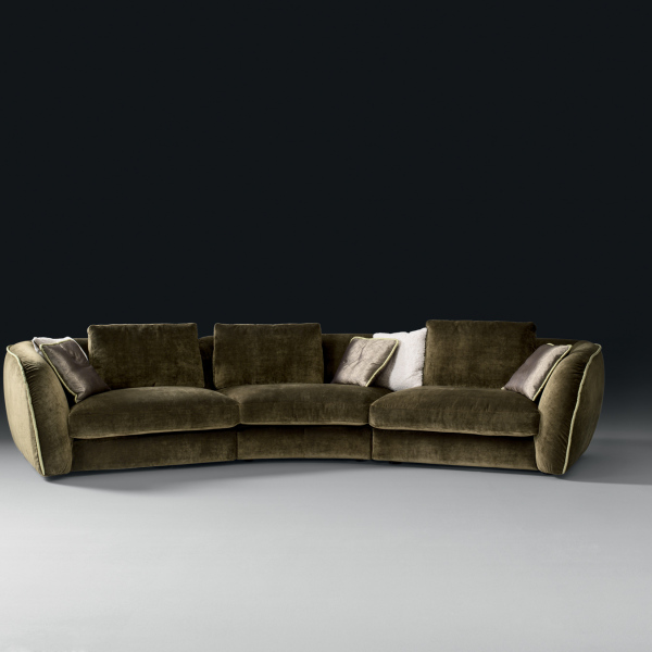 Divano componibile con struttura in legno di pioppo, con molleggio a nastri elastici intrecciati. Imbottitura