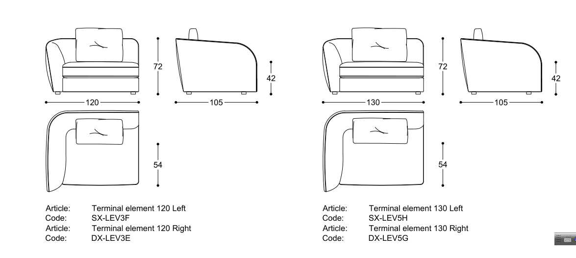 in different densities and memory foam. Back cushions in 100% European, 10% down, channelled down feather,