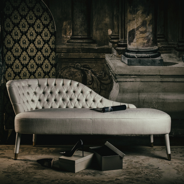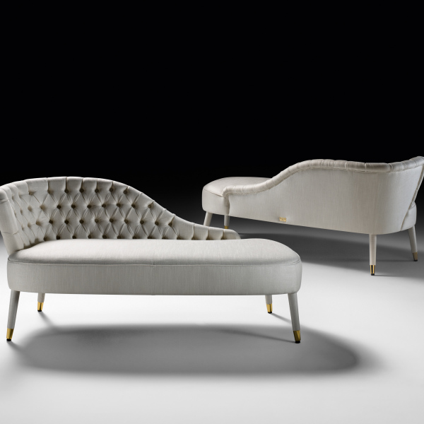 Si narra che su di lei si siano adagiate donne di sensualità e intelligenza sopraffine: sarà per questo che il divano Penelope esprime sinuosa eleganza femminile. Lo schienale, lavorato a mano a capitonnè, accompagna con delicatezza la forma verso la accogliente seduta, personalizzabile nelle finiture. Immancabile il puntale in oro o in bronzo: dettaglio BlackTie di elegante raffinatezza.