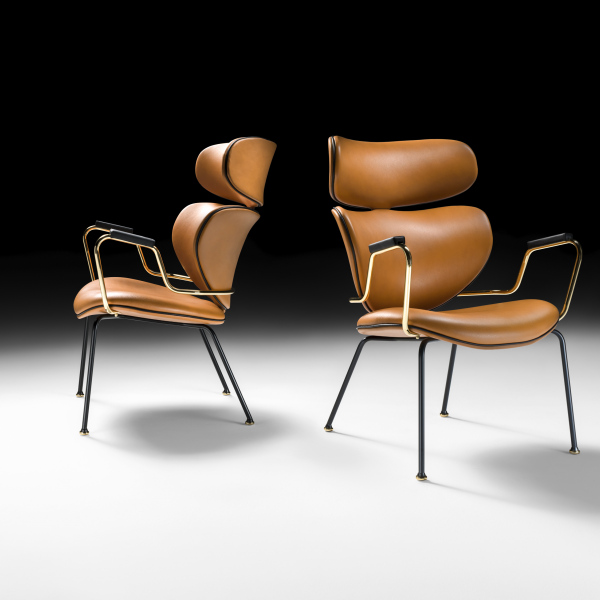 wood, padding in high-resilience expanded polyurethane. Armrest in stainless steel polished gold finishing. Non