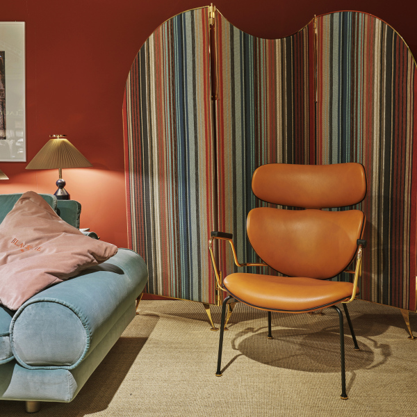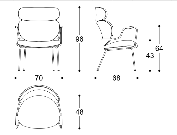 Poltroncina con struttura in multistrato di faggio e imbottitura in poliuretano espanso. Base in metallo tubolare