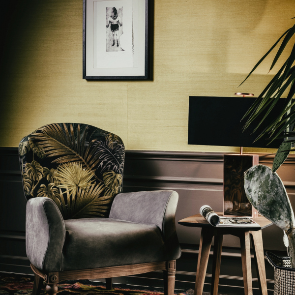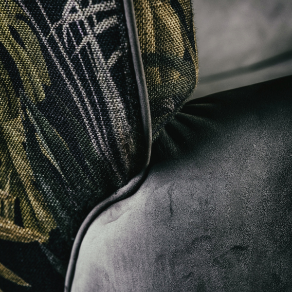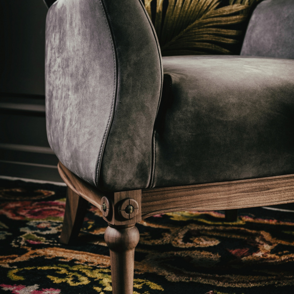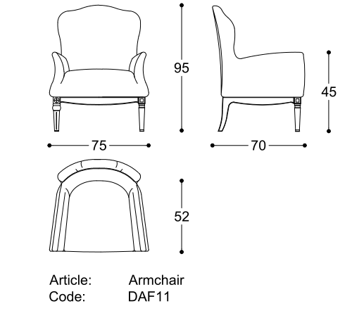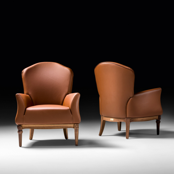 Poltrona con struttura in legno di faggio, con molleggio a nastri elastici intrecciati. Imbottitura struttura in poliuretano