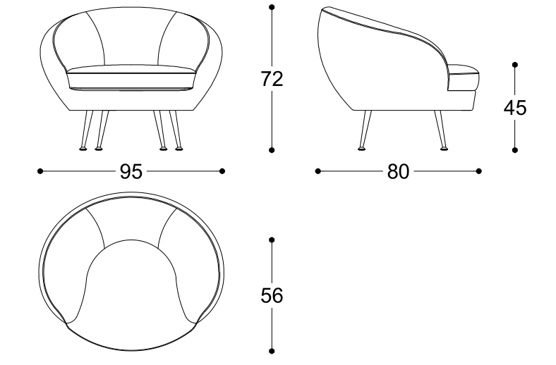 Poltroncina con struttura in legno di faggio, imbottitura e cuscino in poliuretano ignifugo a quote differenziate ad