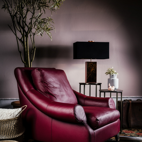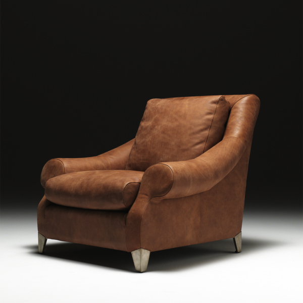 in both fabric and leather versions. Feet in metal matt dark bronze finishing.