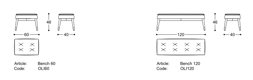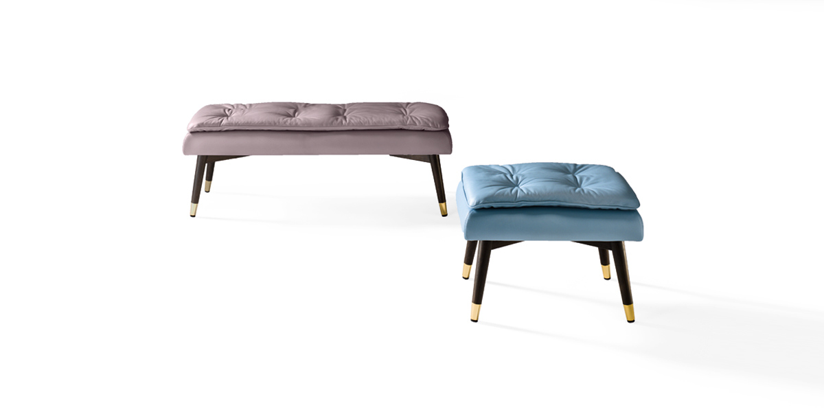 Panchetta con struttura in legno massello di faggio. Imbottitura in poliuretano alta densità. Tessuto non