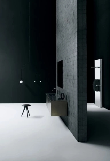 A wall-mounted fitness equipment characterised by small dimensions and a minimal design, conceived for the home environment and based on the precise need of incorporating all the typical functions of a Swedish wall bar system. Origine is made up of a front panel in mirror or Lasemat finish (Fenix Ntm? "soft touch" matt nanotechnology surface) supported by an aluminium structure and equipped with two frontal steel sliding bars, which are equipped with lock, covered in wood, matt black painted. This Swedish wall bar can be equipped with three types of tools: a 1400 mm long solid matt black painted wood bench, to be hooked to the front bars; a set of black rubber bands with matt black painted wooden grips; two pillows, one large curved and one small cylindrical covered in black technical material, to be inserted in the bars. Design Alessandro Andreucci, Christian Hoisl.