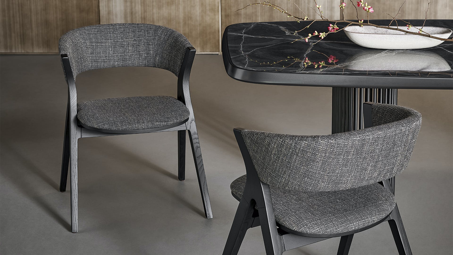 Remo, a chair with an evocative name, draws its inspiration from the image of a person rowing a boat across a stretch of water. In actual fact, the front and rear legs are joined as if to form a pair of moving oars. The pattern of the legs highlights this sense of dynamism, while the continuity in the frame enhances the warmth and solidity of the solid wood which is available in different shades. The curved back makes this seat welcoming and ideal for placing around a table in the dining area or for greater comfort in a work space.