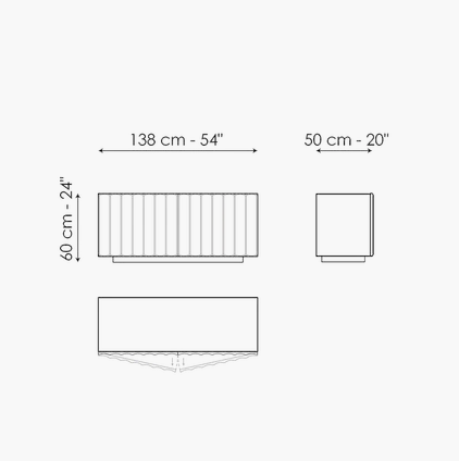 The signature feature of the Dorian contemporary sideboard is the wide vertical groove highlighted in its doors. The sense of movement thus created by the doors of the Dorian sideboard breaks up the linearity of the wall on which it rests, thus adding visual appeal to the intrinsic function of the sideboard. The doors and frame of this sideboard are made of wood, a material which adds elegance to the overall look, painted in white, bronze or lead finishes. The base is available in the version with two feet for a lighter visual effect or in the version with a plinth for a more compact look.