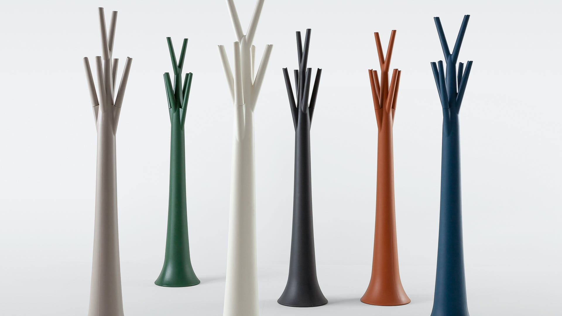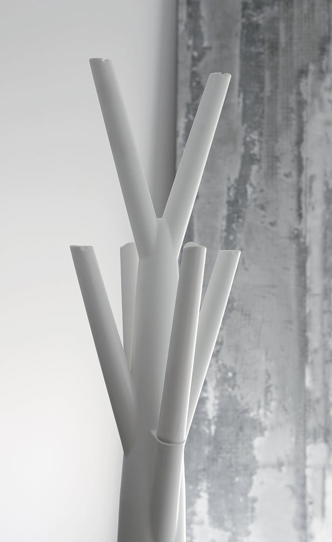 Tree is an entryway coat rack tree that gives personality to the domestic landscape. Perfect for anywhere in the home, it can even be placed outside, thanks to the plastic material it is made of, which is resistant to atmospheric agents. Available in a multitude of finishes, Tree takes its name and design from the unmistakable silhouette of trees, bringing nature, reinterpreted in a cheerful key, into the home. An unusual and fun design piece, capable of enlivening the environments even when it is free of jackets, overcoats and hats. It offers expressive intensity and formal identity with an unusual interpretation while the Tree light is the lamp version of Tree, made in white for purity, elemental appeal and modernity.