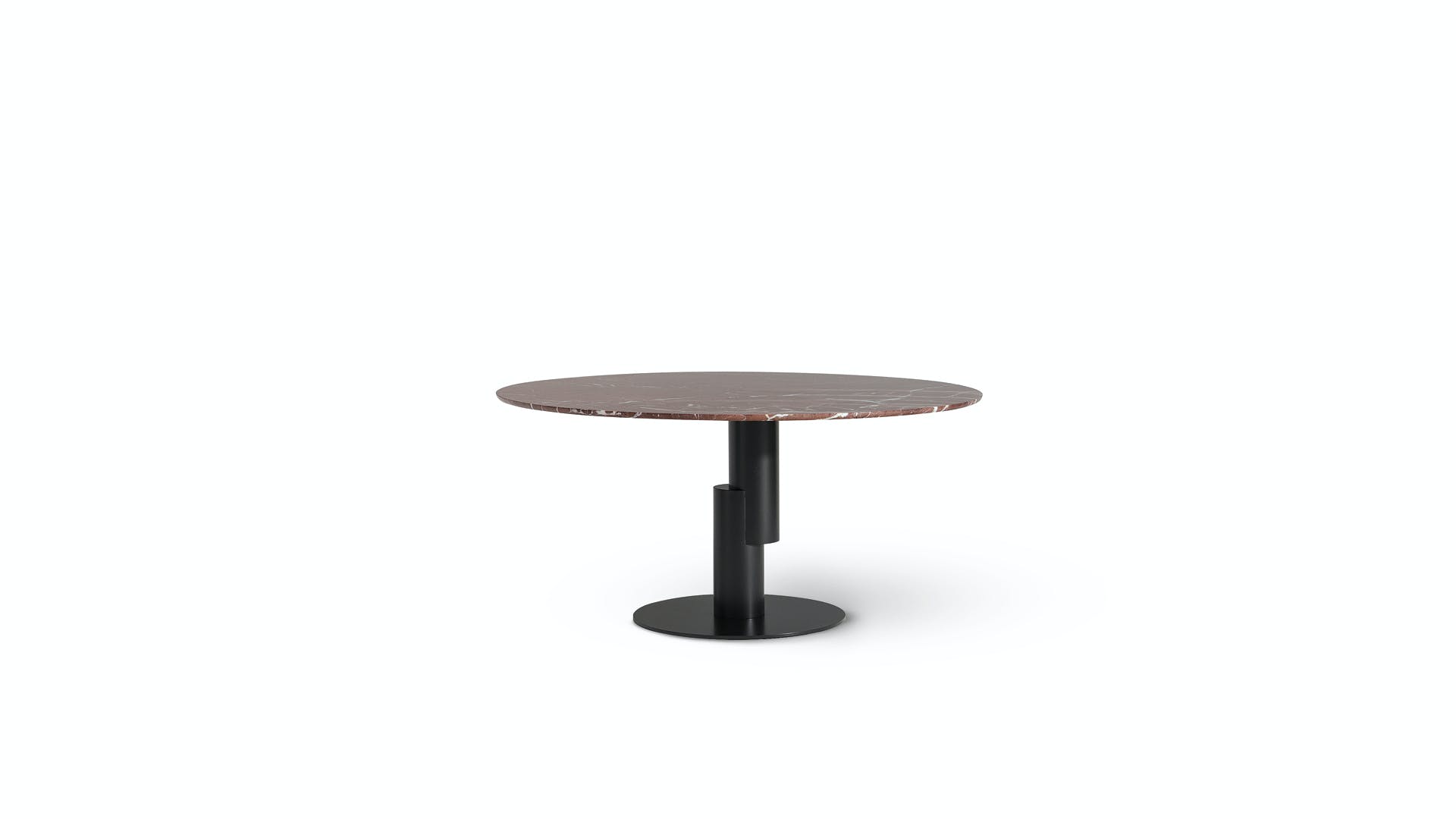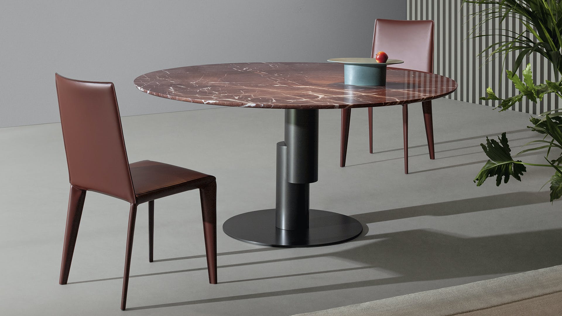 The base of the Innesti modern nesting table, designed by Paolo Grasselli for Bonaldo, appears detached from the upper part of the accessory, as though the top were suspended in the air. The two parts are united by a perfect, yet unexpected joint that puts this table in the spotlight with a great sculptural effect. This element becomes the standout feature of the living area, while dialoguing with the surrounding space thanks to the option of customizing the details with different types of marble, wood and ceramic for the top and different metals for the base.