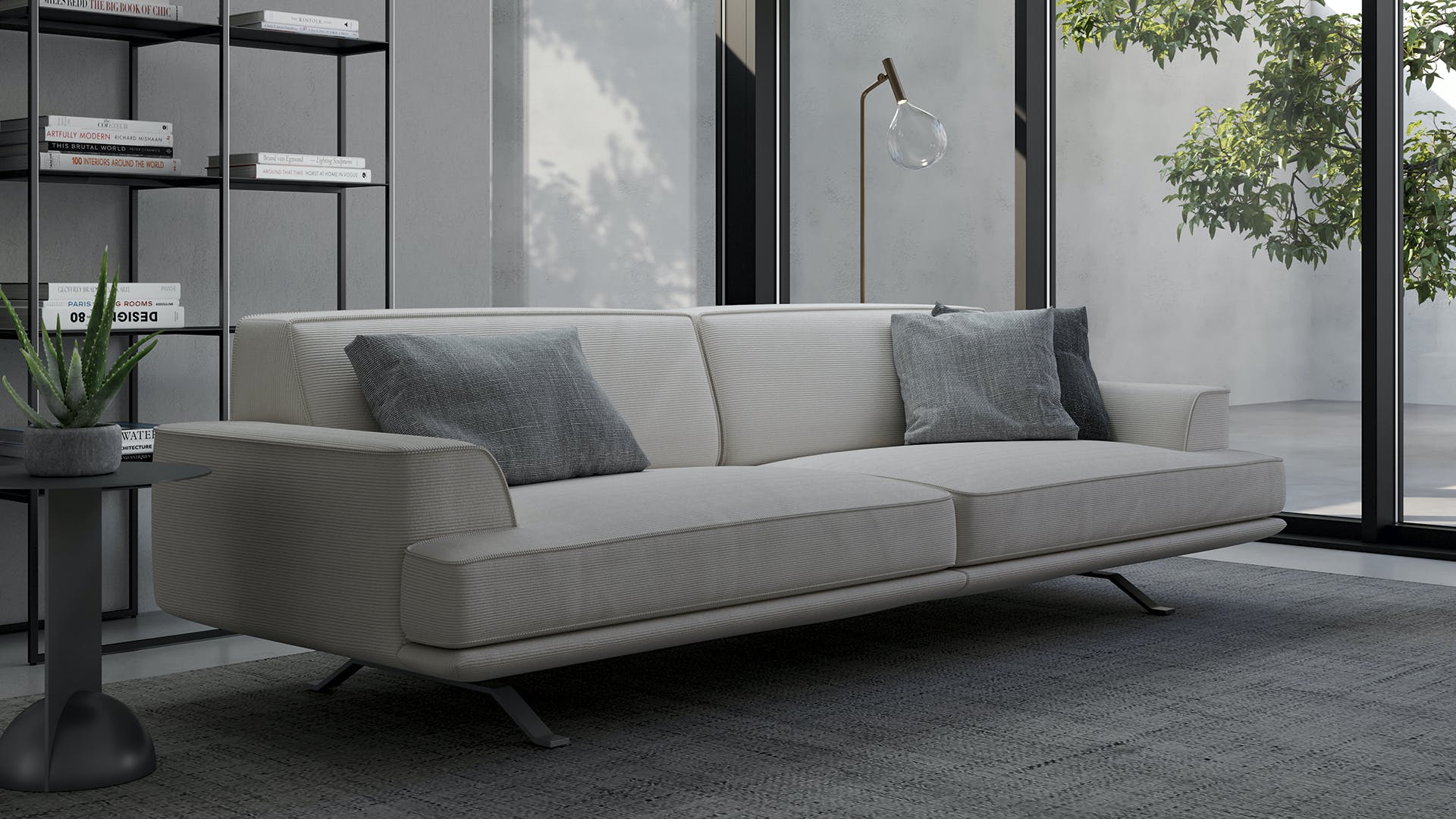 Rigorous linearity of shapes and softness of material coexist in Slab plus, a modern design sofa that can be perfectly included in the home with a balanced modernity and perfect for living areas with an innovative and contemporary spirit, to which it adapts with great flexibility thanks to the numerous elements contained in the collection. Not only aesthetic, but also comfort: the deep seating and the height of the backrest ensure excellent comfort and inspire total relaxation. The fully removable upholstery is available in fabric or leather; the original base in painted metal gives a suspended look and, resuming the squared lines of the padded body, ensures the visual consistency of the design.