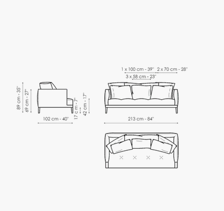 With its slender and minimalist overall image, the Soft Island contemporary sectional modern sofa represents comfort and refuge: with a deep seat, accompanied by a generous amount of cushions, it offers a way of sitting on the sofa that is always customisable. It is possible to choose between several solutions, with linear sofas, poufs, and compositions with corner pieces and chaise longues. The wide body of the Soft Island sofa, with its clean and rigorous lines, accommodates a single long seat cushion, made with stitching that gives movement and elegance. The contrast with the numerous backrest cushions paradoxically enhances the perception of formal simplicity and composed comfort. Soft Island is also available with a metal frame that de?nes the base of the sofa, giving an extra touch of re?nement and elegance. The upholstery of the Soft Island collection is completely removable and is available in fabric or leather. The subtle metal feet slim the composition and lighten its overall image.