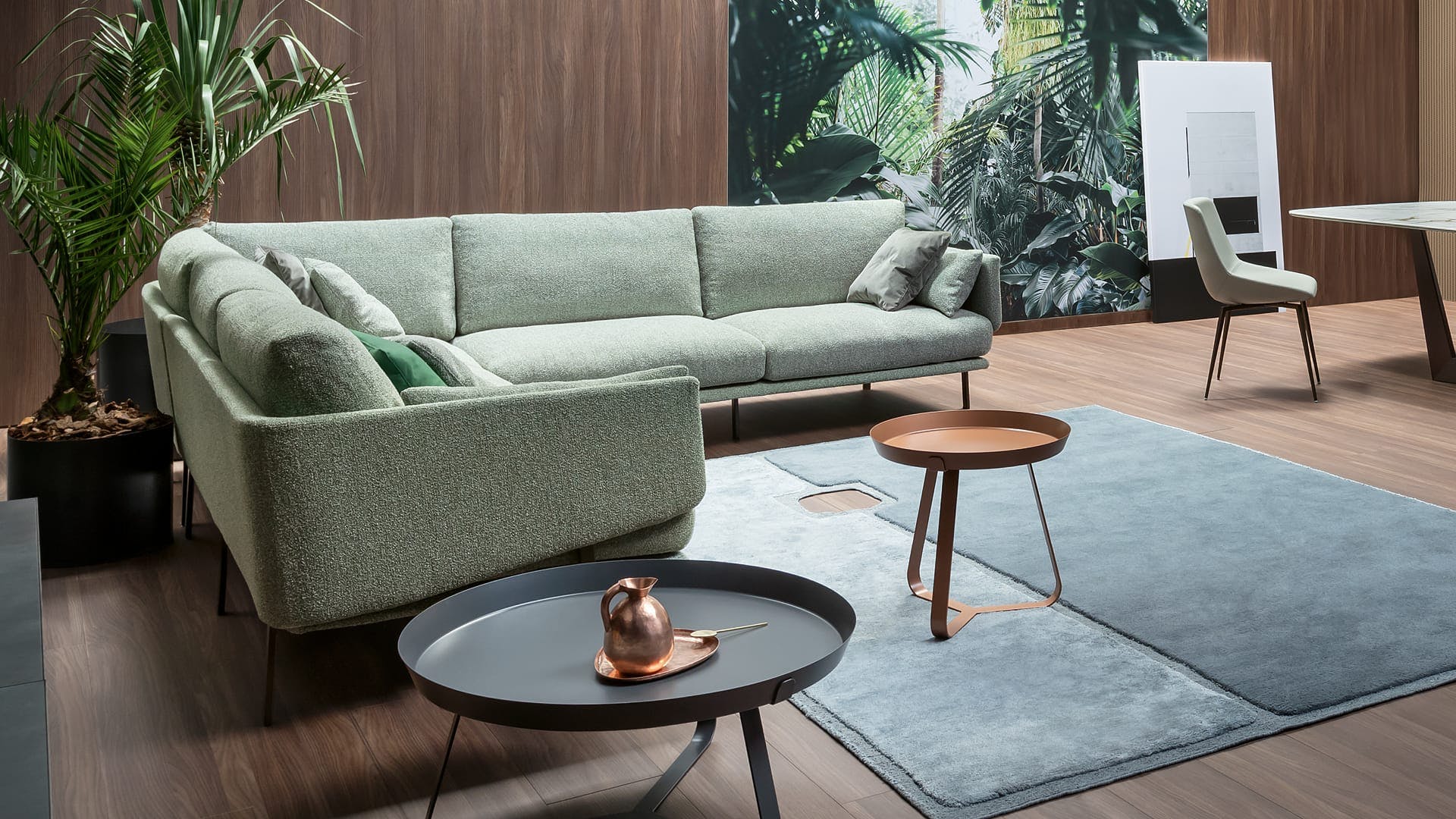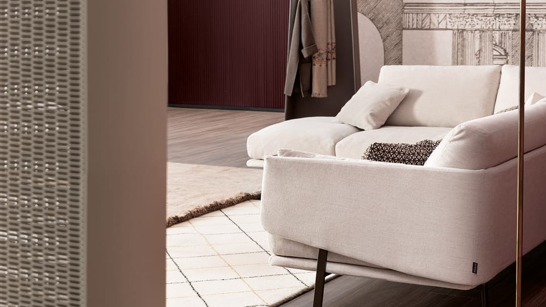 The Structure Sofa emerged from the idea of playing with the structure of a classic sofa, to reveal an inside that is softer and to create a dynamic movement between the seat and the backrest. The metal core is in some places visible, in others it is partially hidden, giving it an entirely informal look. The colours of the metal frame can in fact be chosen tone-on-tone or in contrast to the upholstery, thus creating an unexpected visual effect. The upholstery, in fabric or leather, is fully removable. The leather or fabric Structure Sofa allows maximum modularity, thanks to the numerous elements, which make it possible to create, in addition to the linear sofa, solutions with chaise longue or corners, combining comfortable poufs or coordinated armchairs. Its innovative design is particularly admired, and has brought it awards and recognition, including the Henry Van de Velde Label.