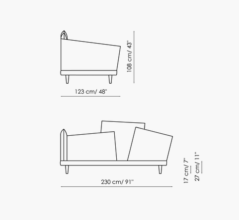 A disorderly combination of cushions that manages to be decorative and functional, discreet yet spectacular: this is the Picabia headboard, the corner single bed design with unusual lines that offers those who choose it numerous options for personalisation, giving maximum space to creativity for a unique result and effect. The covers of the cushions that make up the headboard and one side can be monochromatic, with graded effect or in contrast, in line with personal tastes, thereby giving the bed a completely different character depending on the selected combinations. The removable cover is made of fabric or leather. The wooden feet are available in grey anthracite or walnut wood or made of matt painted metal. Picabia is available in double or single versions