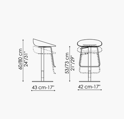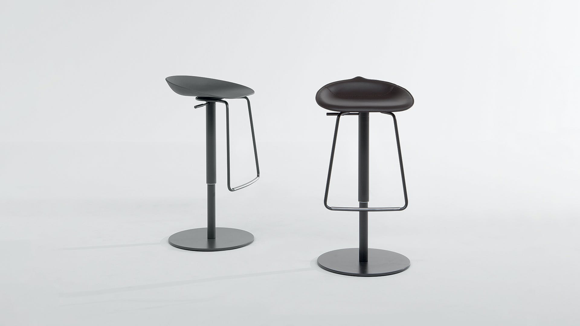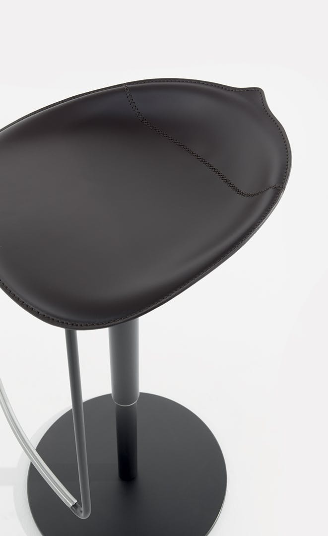 The Tab modern backless bar stool, designed by Dondoli & Pocci, is a functional element that creates an elegant and distinctive trait d’union with an open space kitchen or with the open bar of the living room, but which is also perfect for collective spaces in the contract sphere. Tab’s rounded and soft lines bring to mind the world of nature: the seat is in fact smoothed as if it were a pebble, so as to make the stool, together with the footrest, even more welcoming for a well-deserved moment of relaxation. Tab is available in emery-leather upholstery for a touch of elegance and warmth.