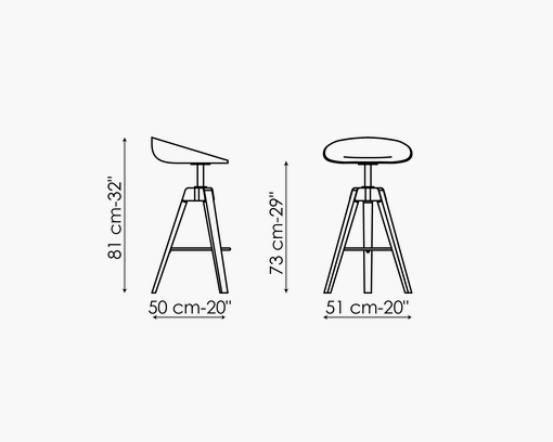 The compactness and simplicity of the design that characterises the Plumage bar stool ensure an effect of maximum lightness. Designed by Dondoli and Pocci, the stool draws its inspiration from the shape of the Eiffel Tower. The sleek and slender line of Plumage can satisfy the need for space and functionality in both the home and contract sector. Available in two different heights, the elegant stool is distinguished by the contrast between the swivel seat in plastic and the legs, made of solid ash-wood. The four colours available for the seat, combined with the three wooden finishes in which it is possible to choose the legs, allow one to create elegant tone-on-tone combinations or bold compositions.