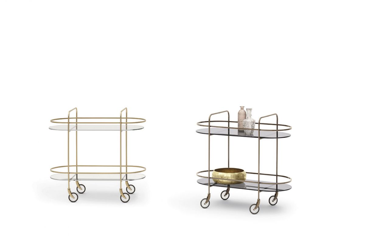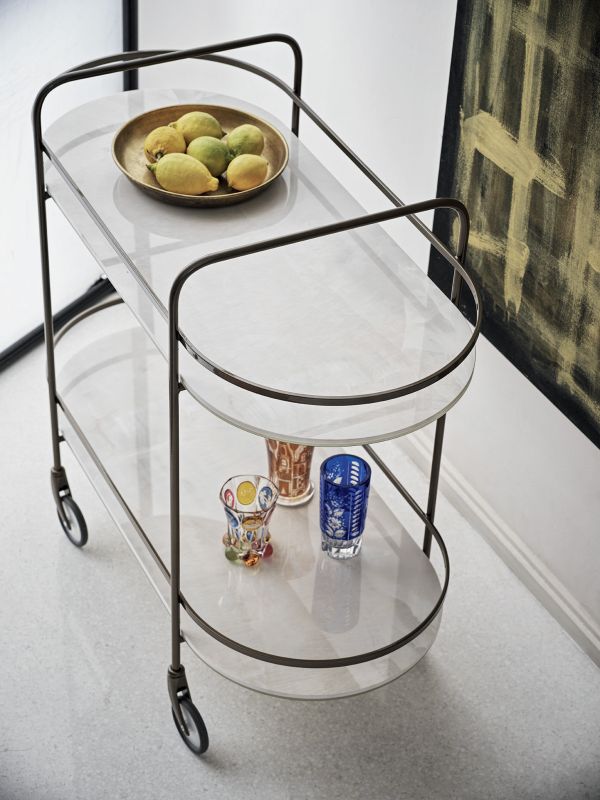 Food trolley on wheels with metal frame, top in glossy glass, matt anti-scratch glass or SuperMarble
