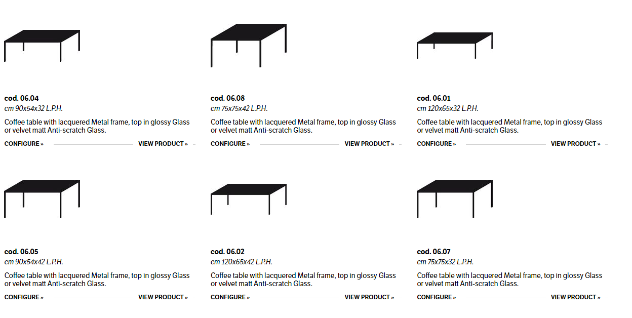 Coffee table with lacquered Metal frame, top in glossy Glass or velvet matt Anti-scratch Glass.