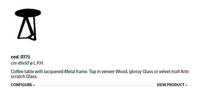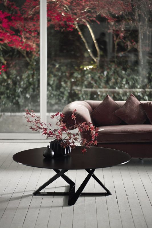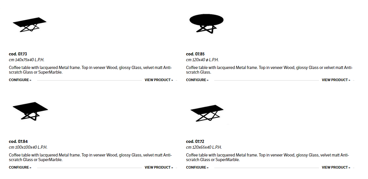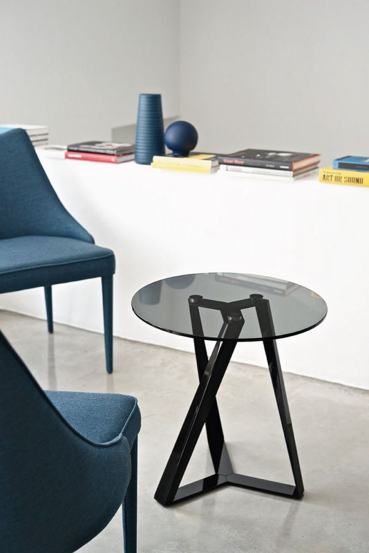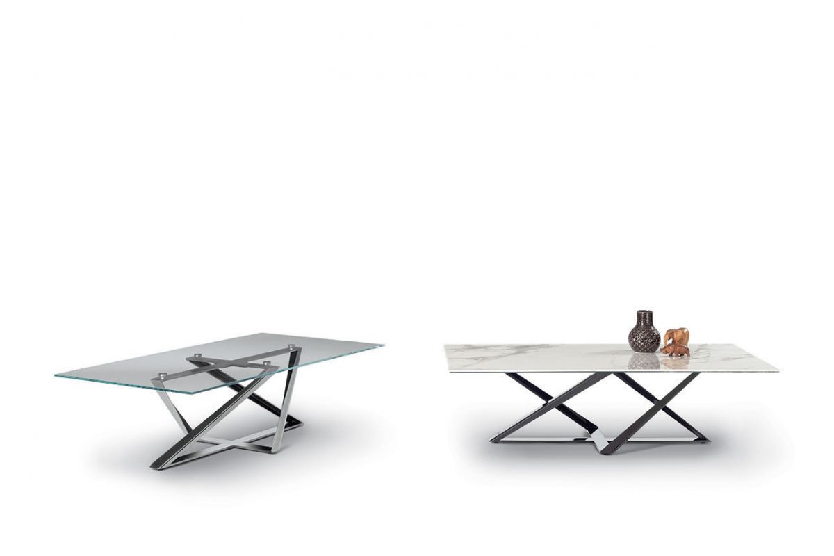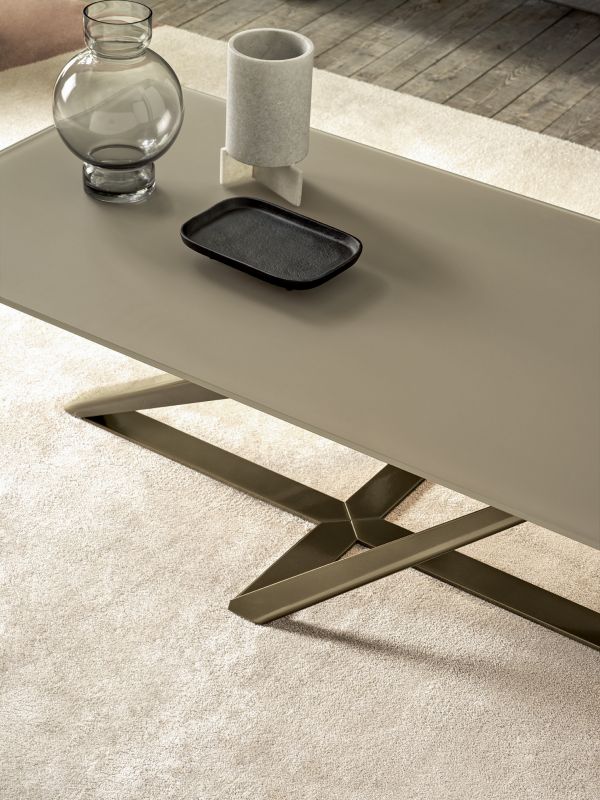 Coffee table with lacquered Metal frame. Top in veneer Wood, glossy Glass, velvet matt Anti-scratch Glass or SuperMarble.