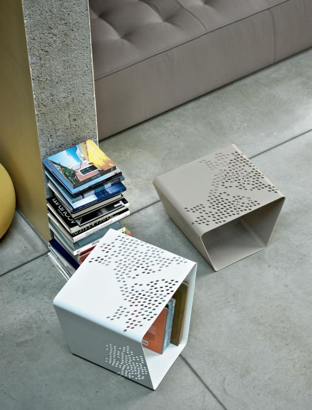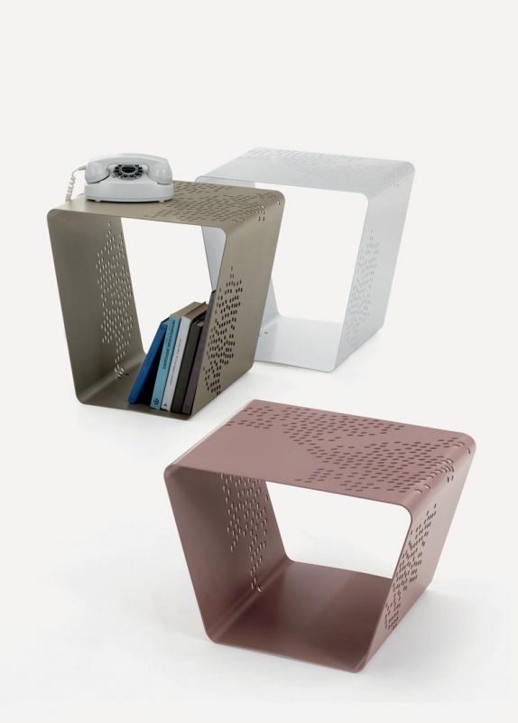 Coffee table/ottomans/magazine rack in patterned lacquered Metal frame.