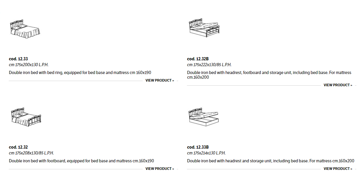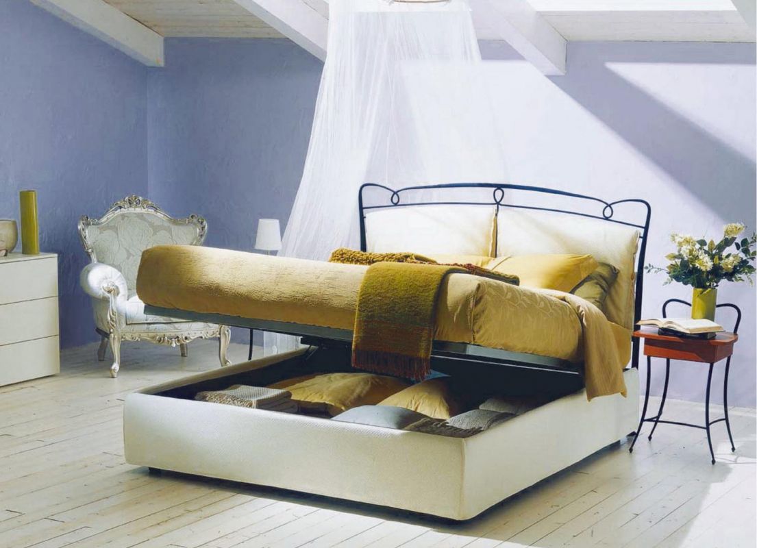 Iron bed in lacquered or hand-coated metal frame, in double version, with footboard, bed ring or storage unit.