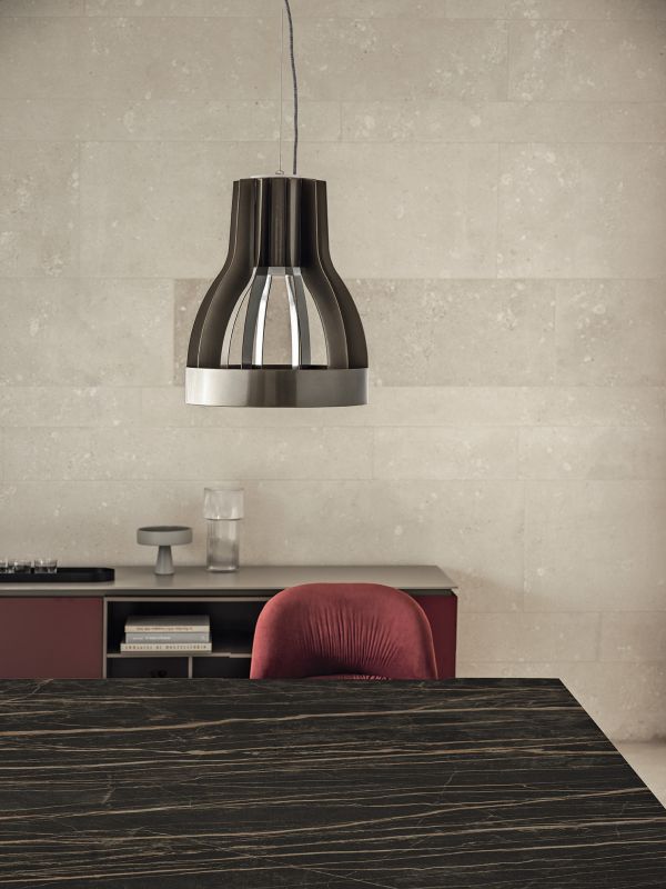 Ceiling light with black ceiling rose and lacquered structure.