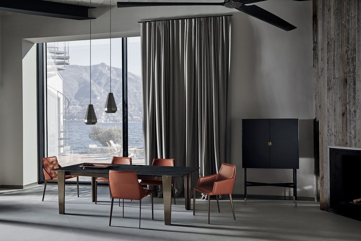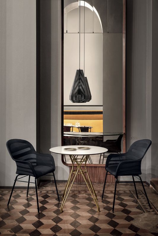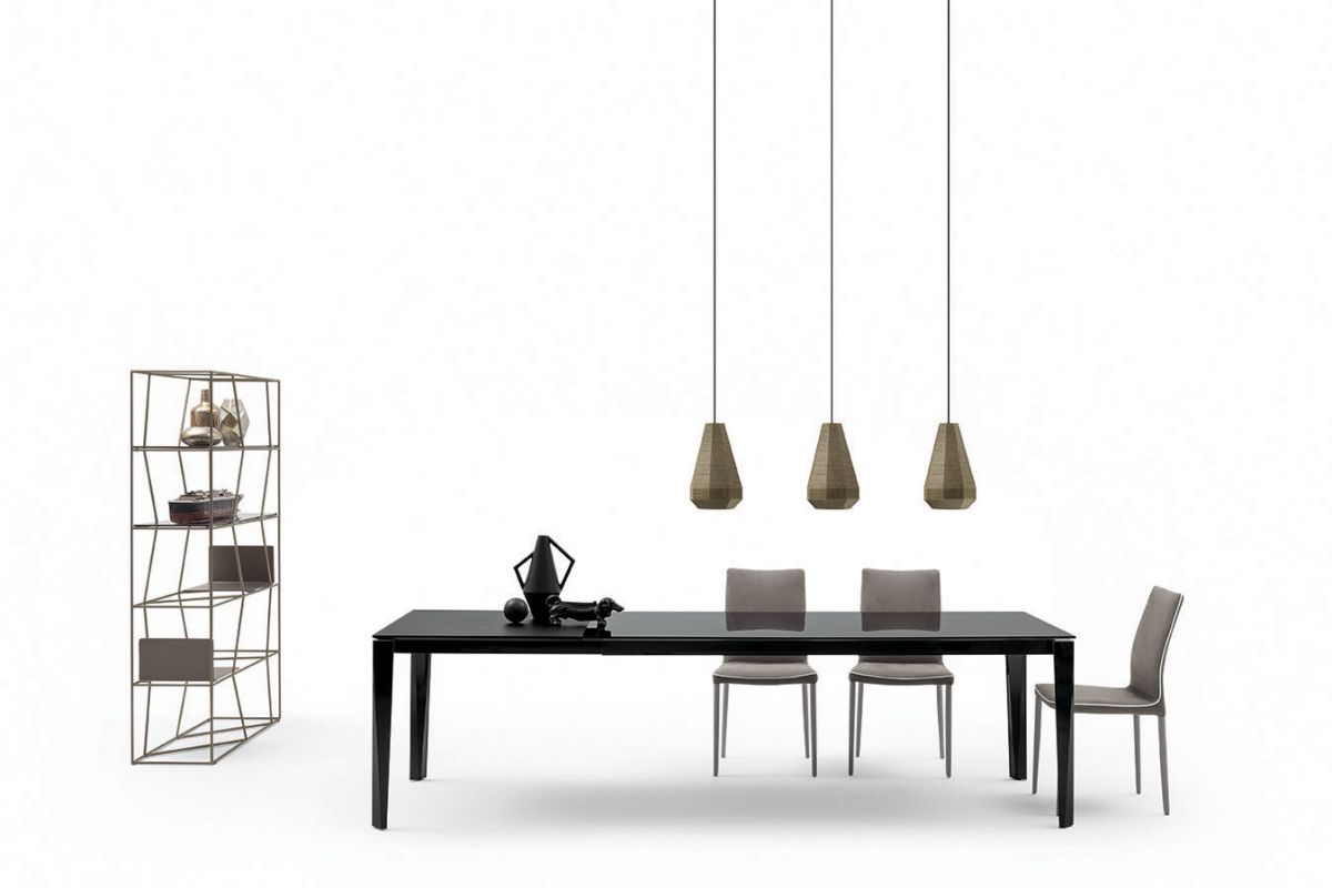 Ceiling light with black ceiling rose and lacquered structure.