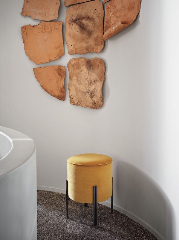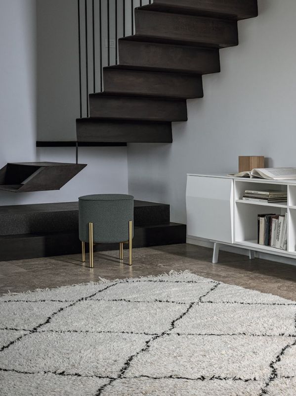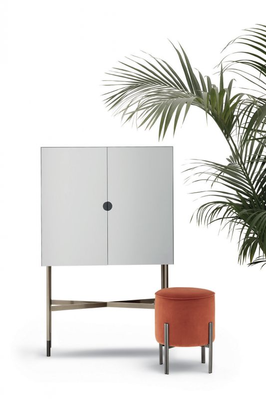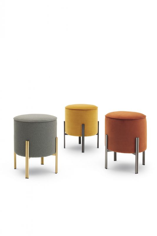 Ottoman with lacquered Metal frame, upholstered and covered in Eco Leather, Technical velvet, Mambo and Lulù fabric, Waterproof Nabuk, Waterproof printed Nabuk, Pure Virgin Wool, Velvet, Decò fabric, Kvadrat field and Kvadrat Coda fabric, Premium Nappa Leather.