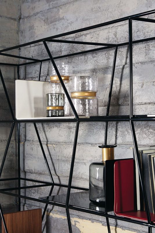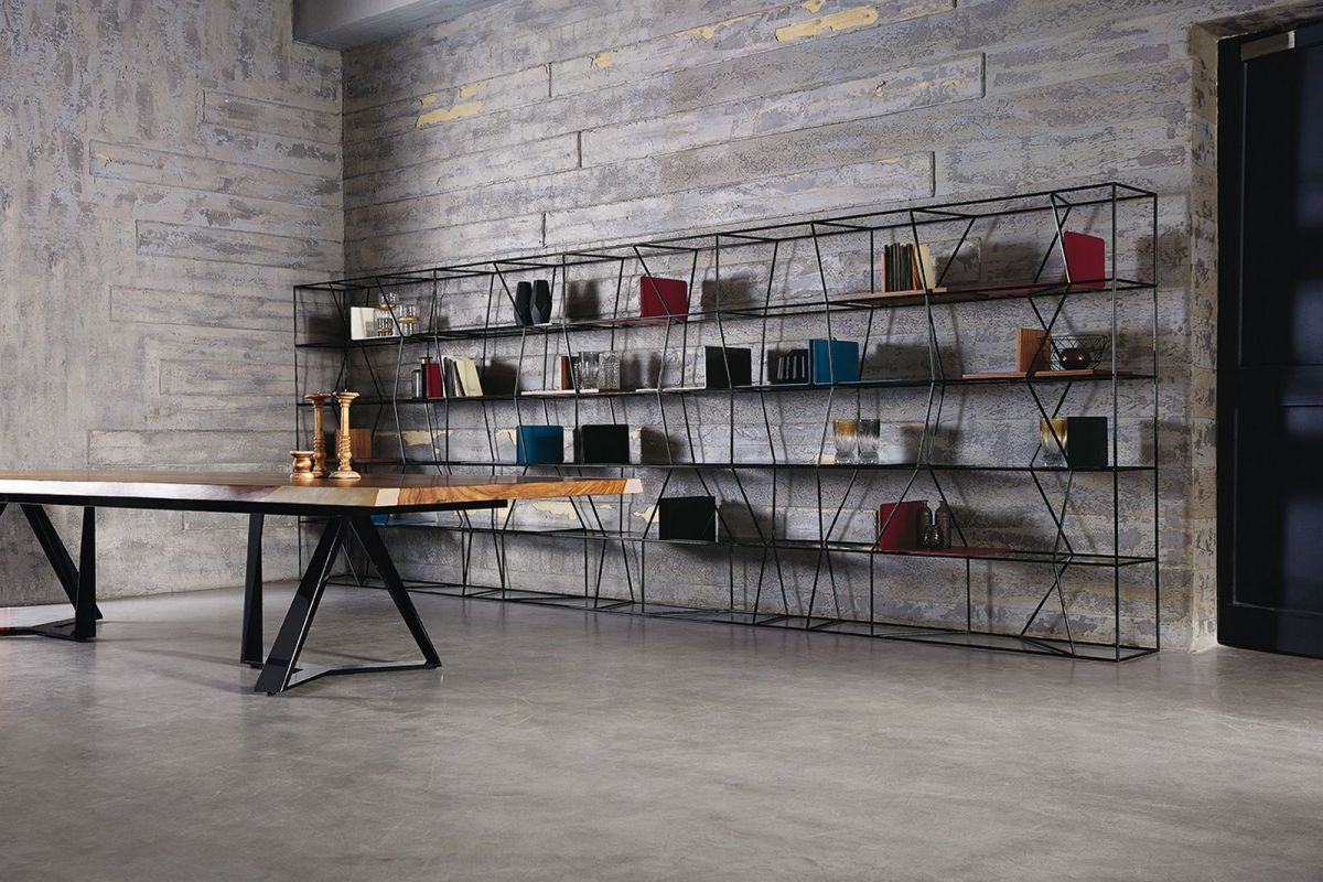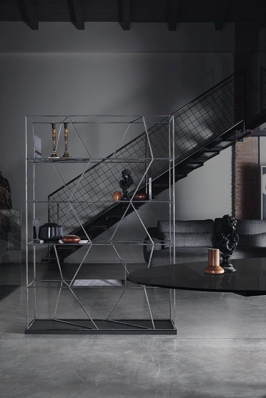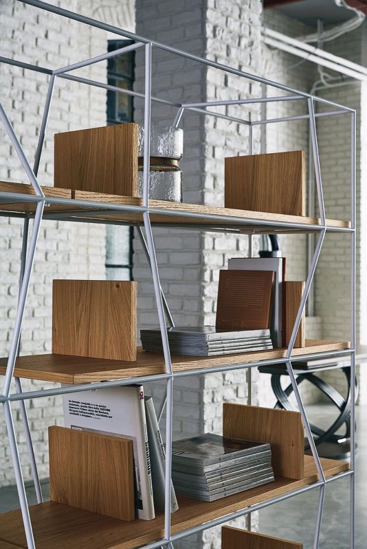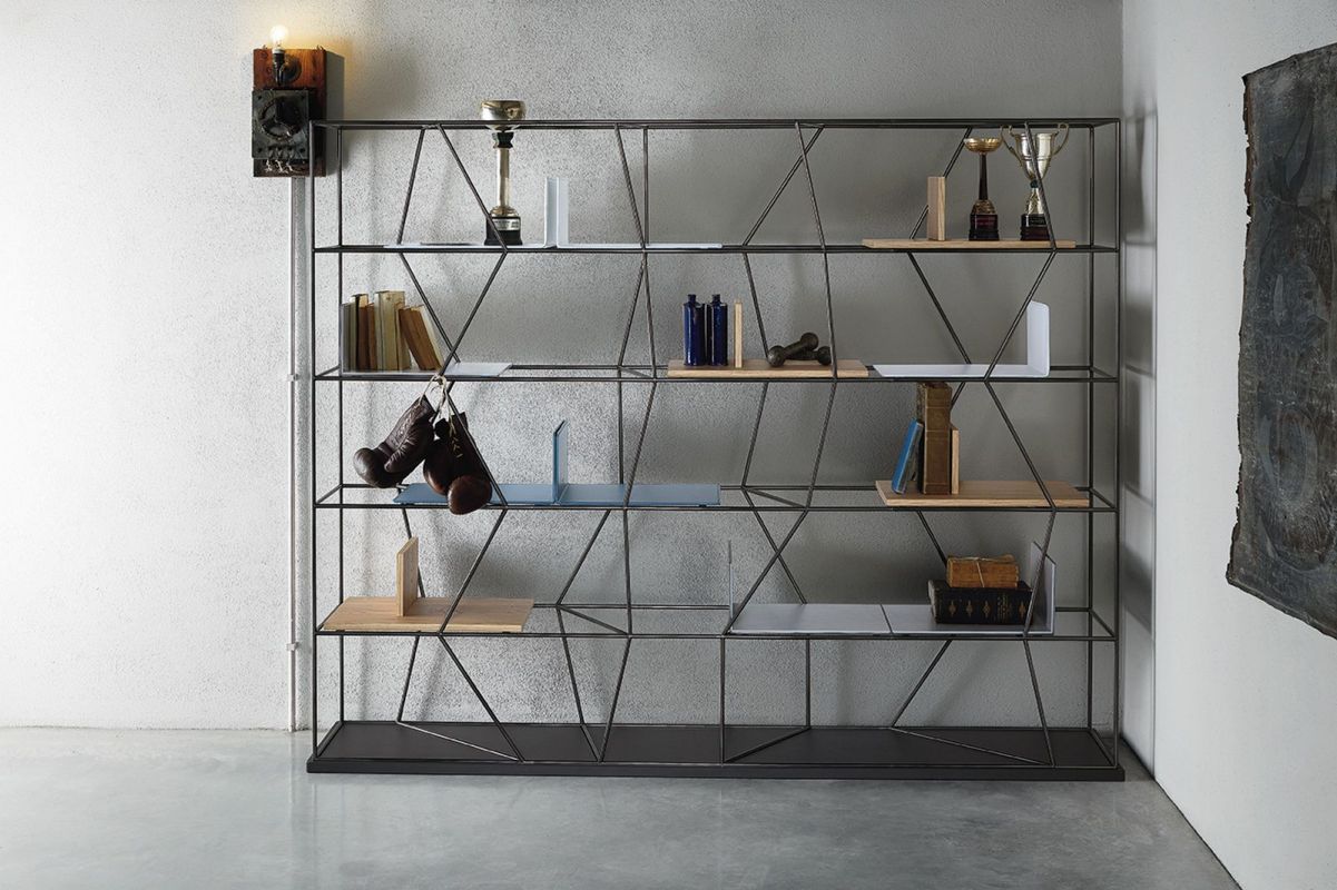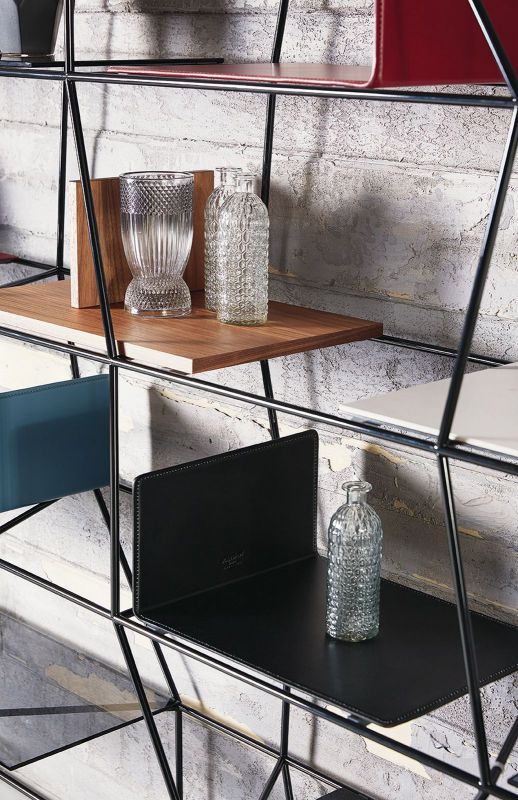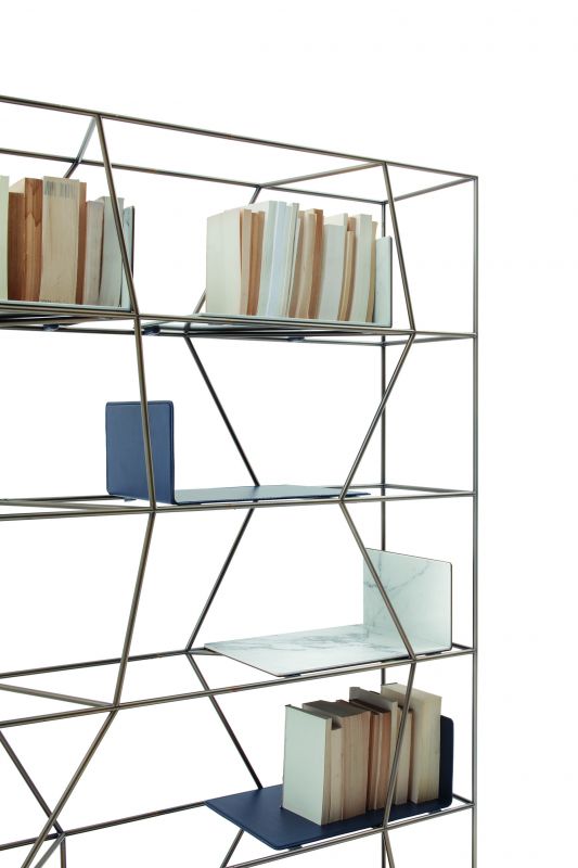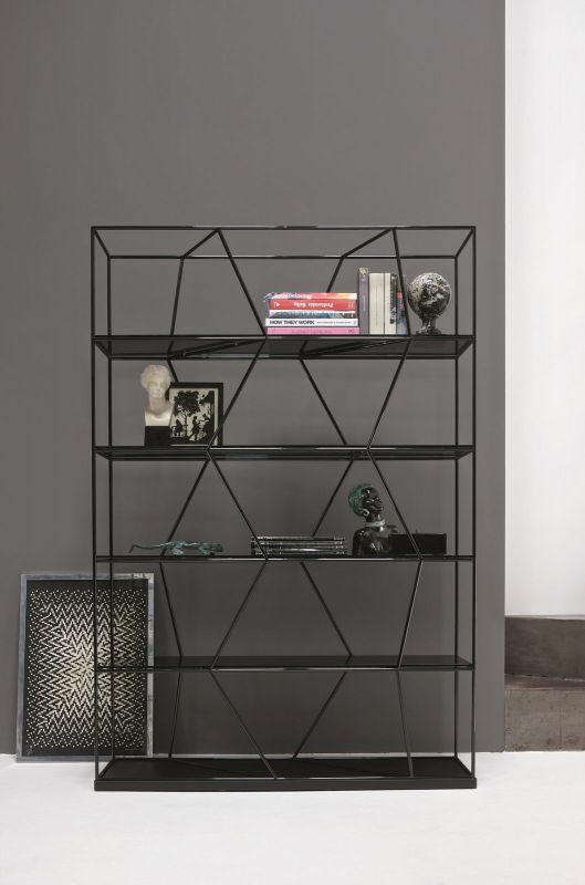 Bookcase with lacquered Metal frame.