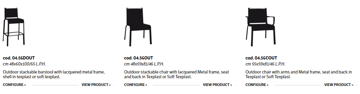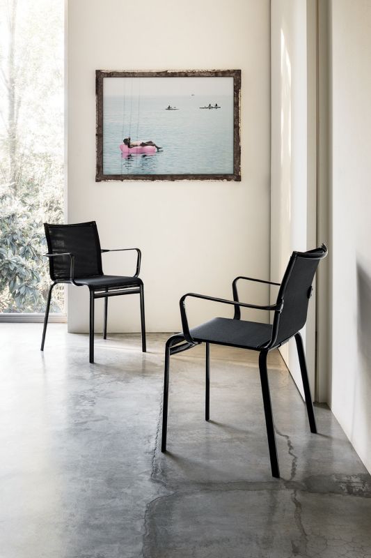 Outdoor stackable Chair/Chair with arms with lacquered metal frame, shell in texplast or soft texplast.