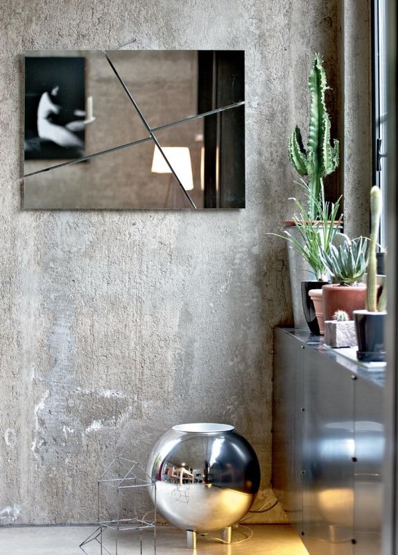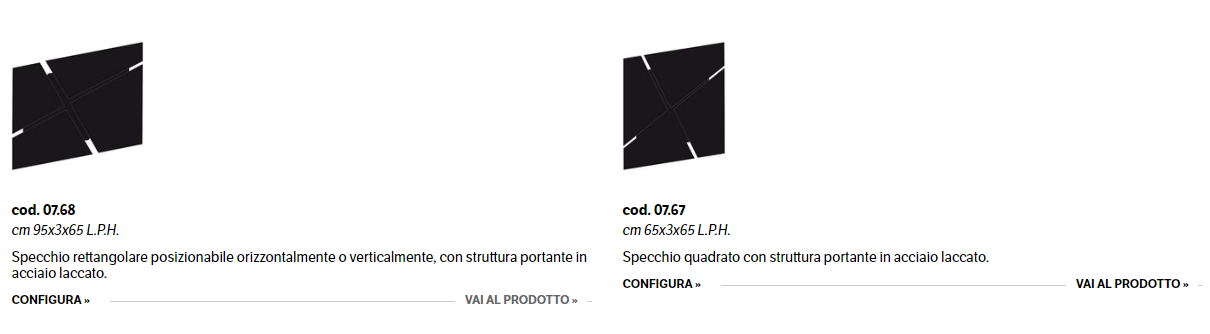 Specchio quadrato e rettangolare posizionabile orizzontalmente o verticalmente, con struttura portante in acciaio laccato.