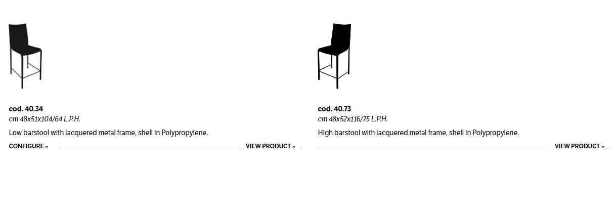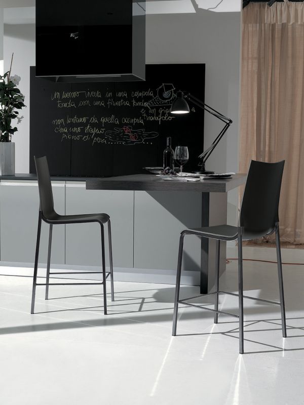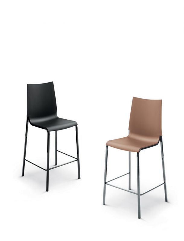 High and low Barstool with lacquered metal frame, shell in Polypropylene.