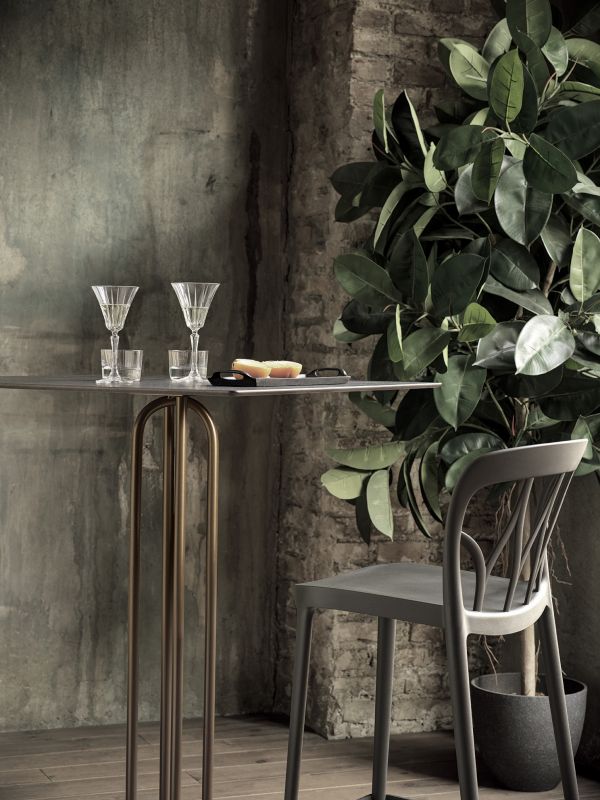Stacking barstool in polypropylene and recyclable glass fibre.