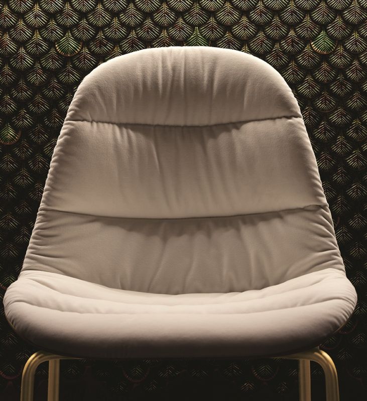 Barstool with lacquered Metal frame, triangular legs and round section. Shell in polypropylene upholstered and covered on the front in Eco Leather, Technical velvet, Mambo and Lulù fabric, Waterproof Nabuk, Waterproof printed Nabuk, Pure Virgin Wool, Velvet, Decò fabric, Kvadrat Field fabric, Kvadrat Coda fabric, Premium Nappa Leather
