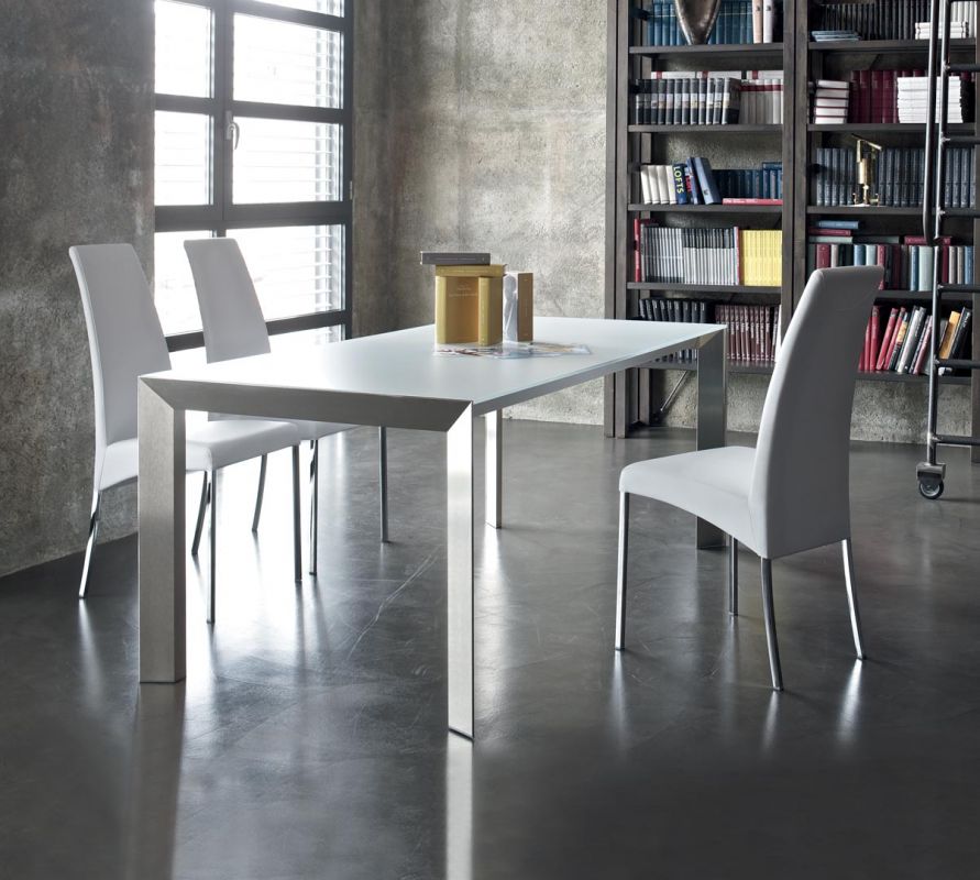 Chair with lacquered or chrome Metal frame. Seat and back padded and upholstered in Eco Leather, Technical velvet, Mambo and Lulù fabric, Technical velvet, Waterproof Nabuk, Waterproof printed Nabuk, Pure Virgin Wool, Velvet, Decò fabric and Premium Nappa Leather.
